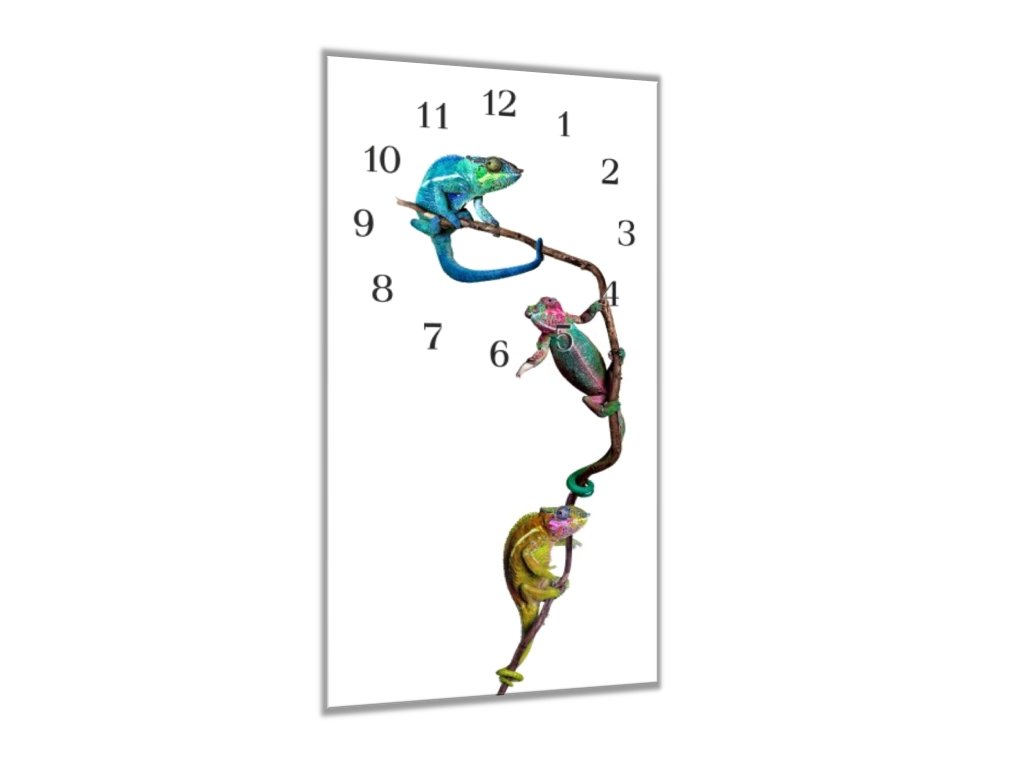 Nástěnné hodiny 30x60cm tři barvení chameleoni