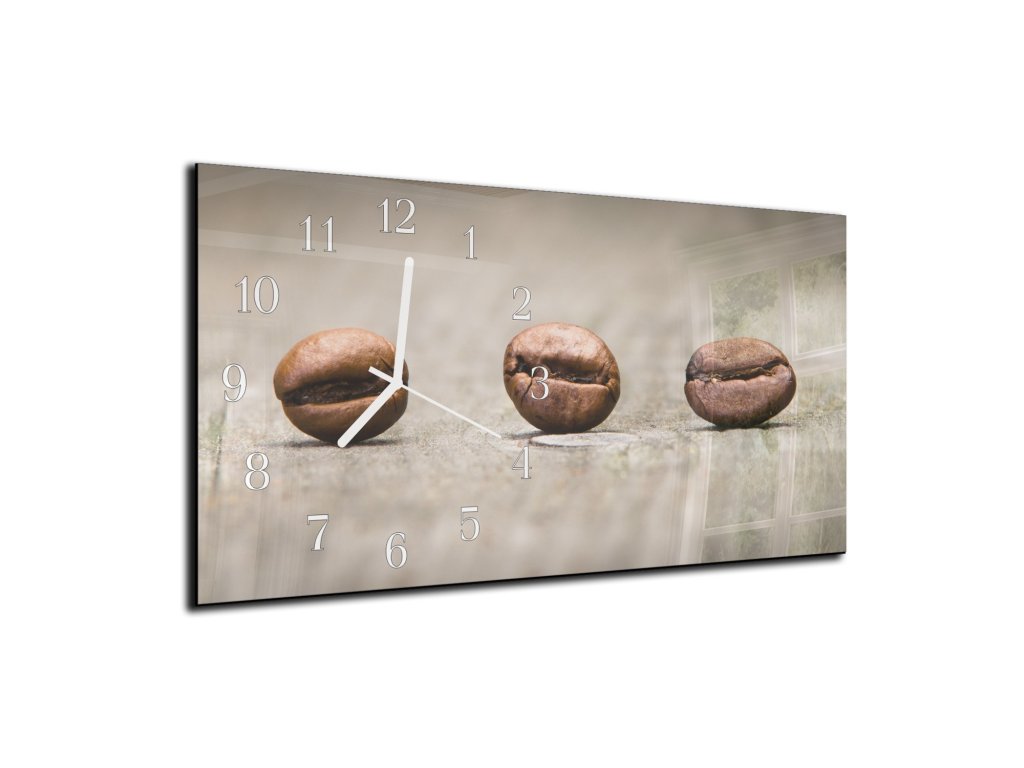 Nástěnné hodiny 30x60cm tři kávové zrna na dřevě