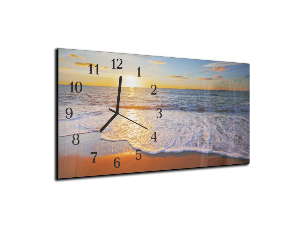 Nástěnné hodiny 30x60cm západ slunce u moře s vlnami