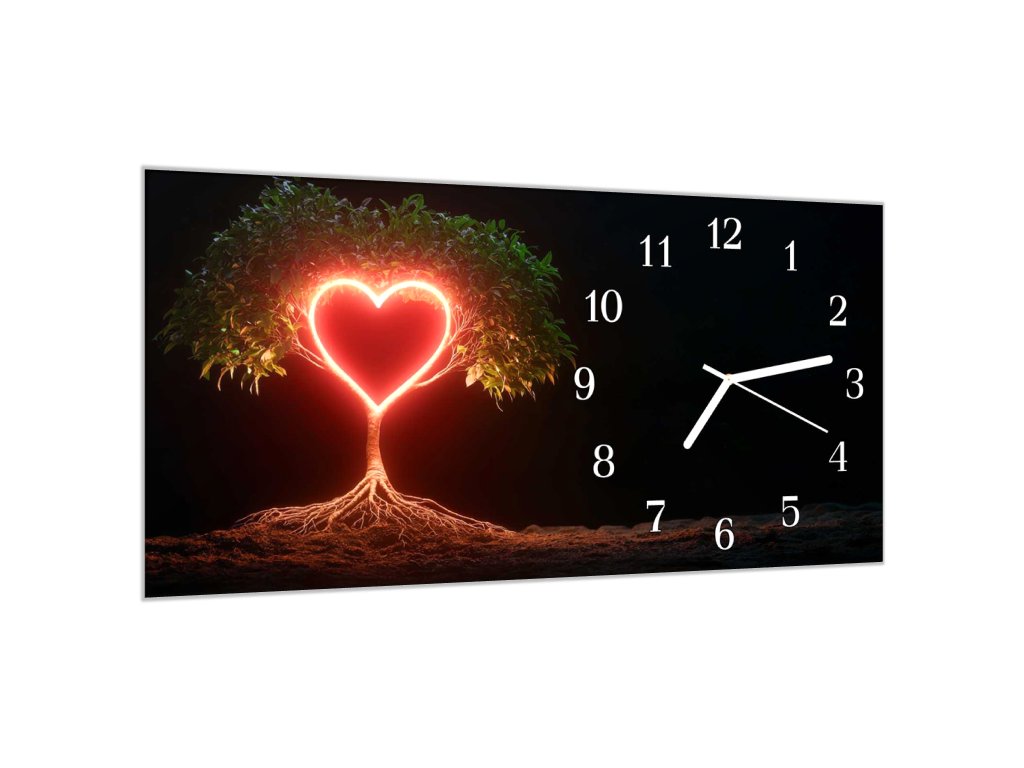 Nástěnné hodiny 30x60cm zářící strom srdce