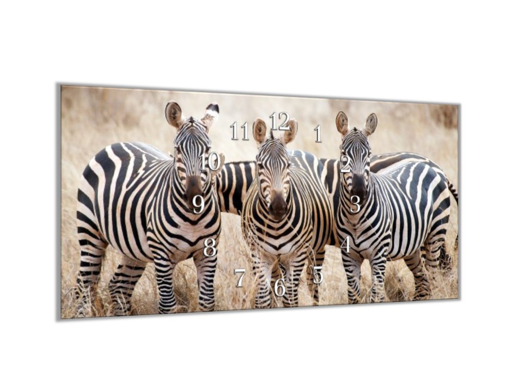Nástěnné hodiny 30x60cm zebry na pastvě