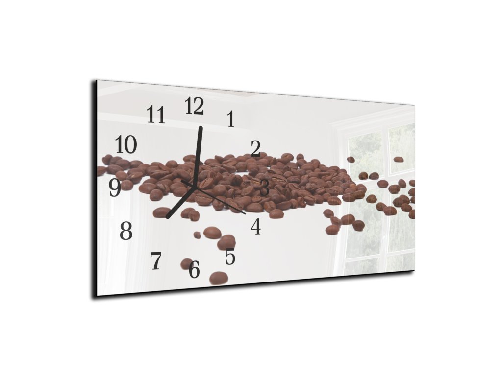 Nástěnné hodiny 30x60cm zrna kávy, bílé pozadí