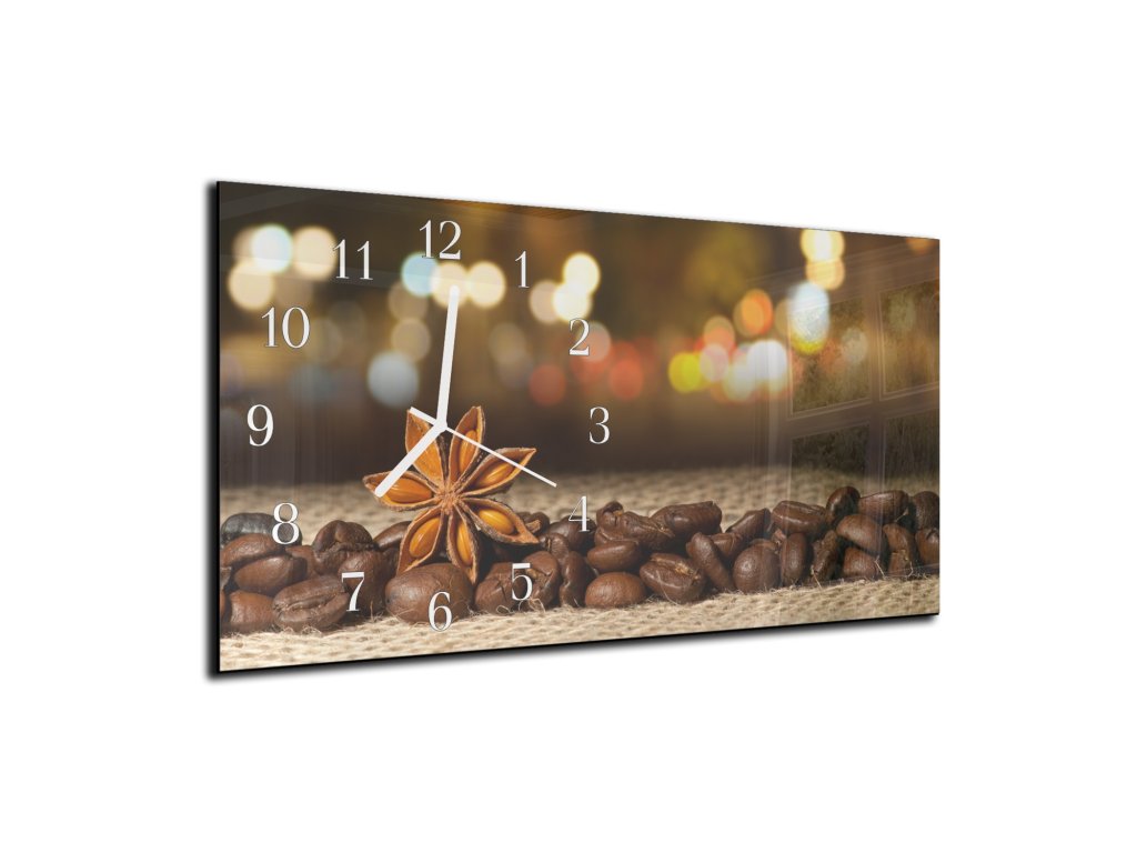 Nástěnné hodiny 30x60cm zrna kávy a badyán