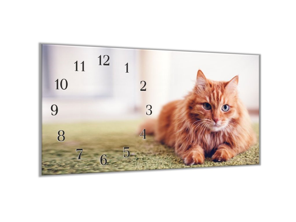 Nástěnné hodiny 30x60cm zrzavá chlupatá kočka