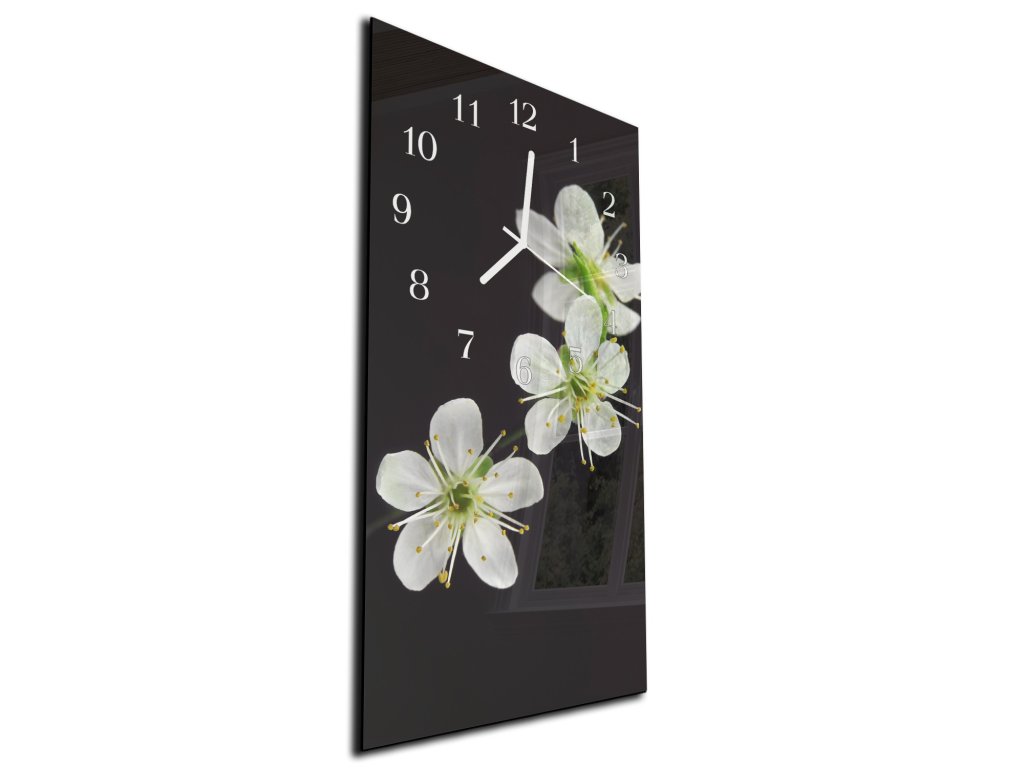 Nástěnné hodiny bílý květ černé pozadí 30x60cm