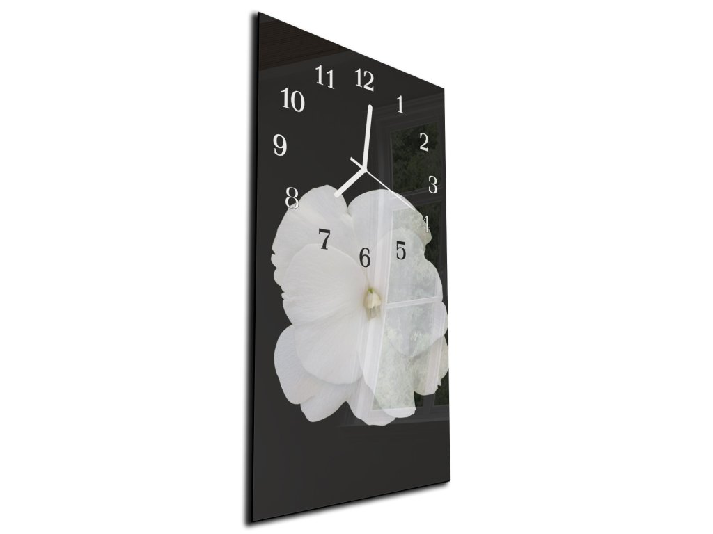 Nástěnné hodiny bílý květ černé pozadí 30x60cm