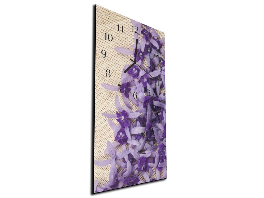 Nástěnné hodiny fialové květy na tkanině 30x60cm