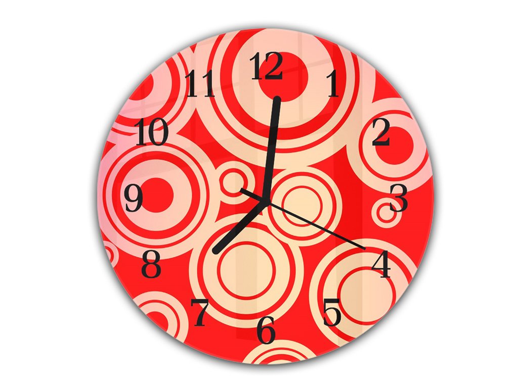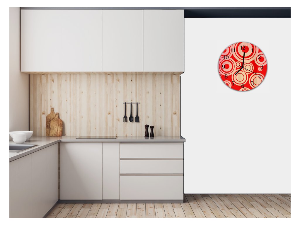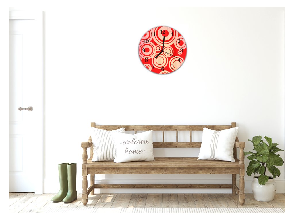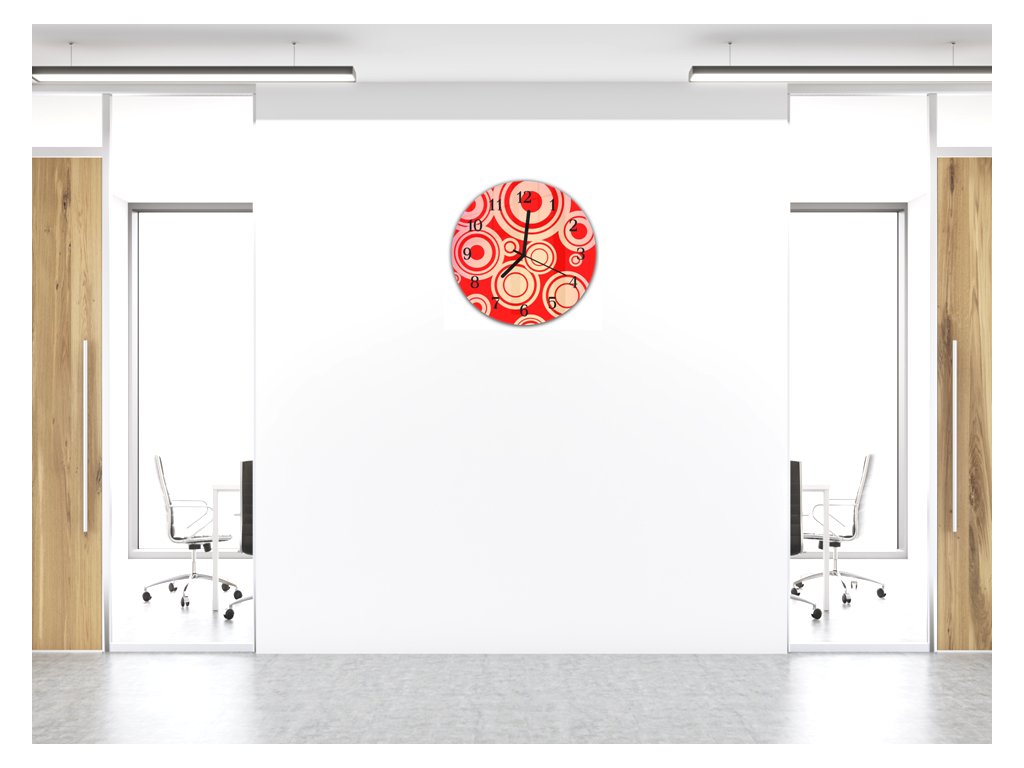 Nástěnné hodiny kulaté pr.30cm abstraktní červené retro