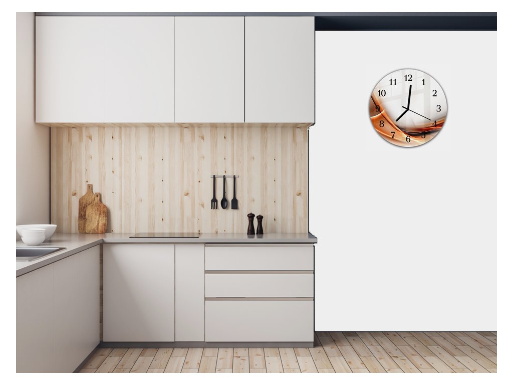 Nástěnné hodiny kulaté pr.30cm abstraktní oranžová vlna