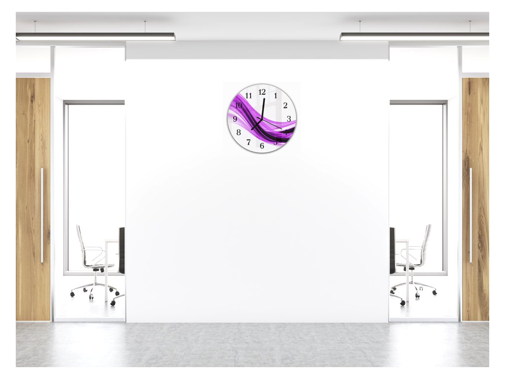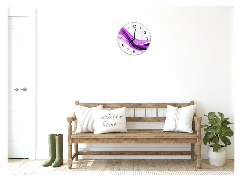 Nástěnné hodiny kulaté pr.30cm abstraktní temně fialová vlna