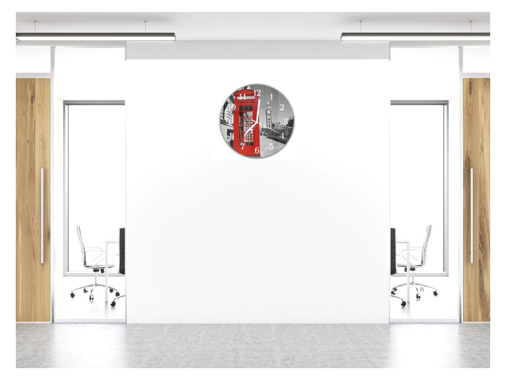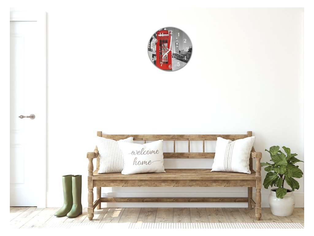 Nástěnné hodiny kulaté pr.30cm Anglická telefonní budka v Londýně a věž