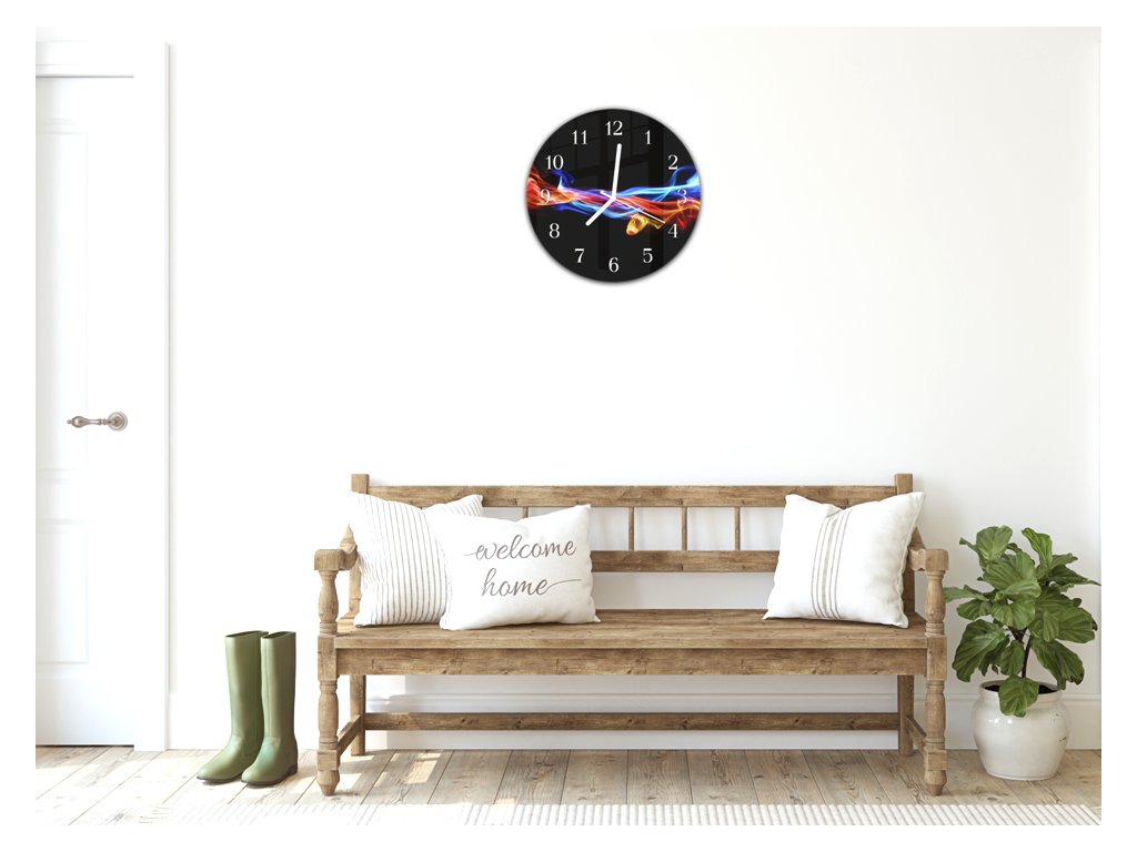 Nástěnné hodiny kulaté pr.30cm barevná vlna na černém
