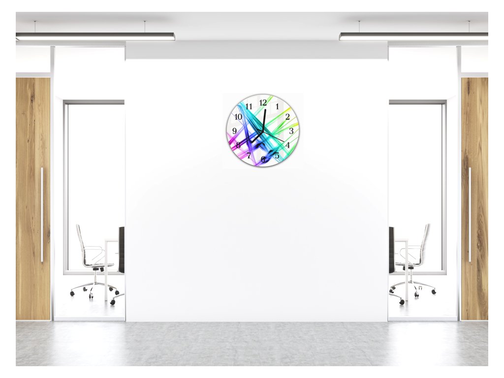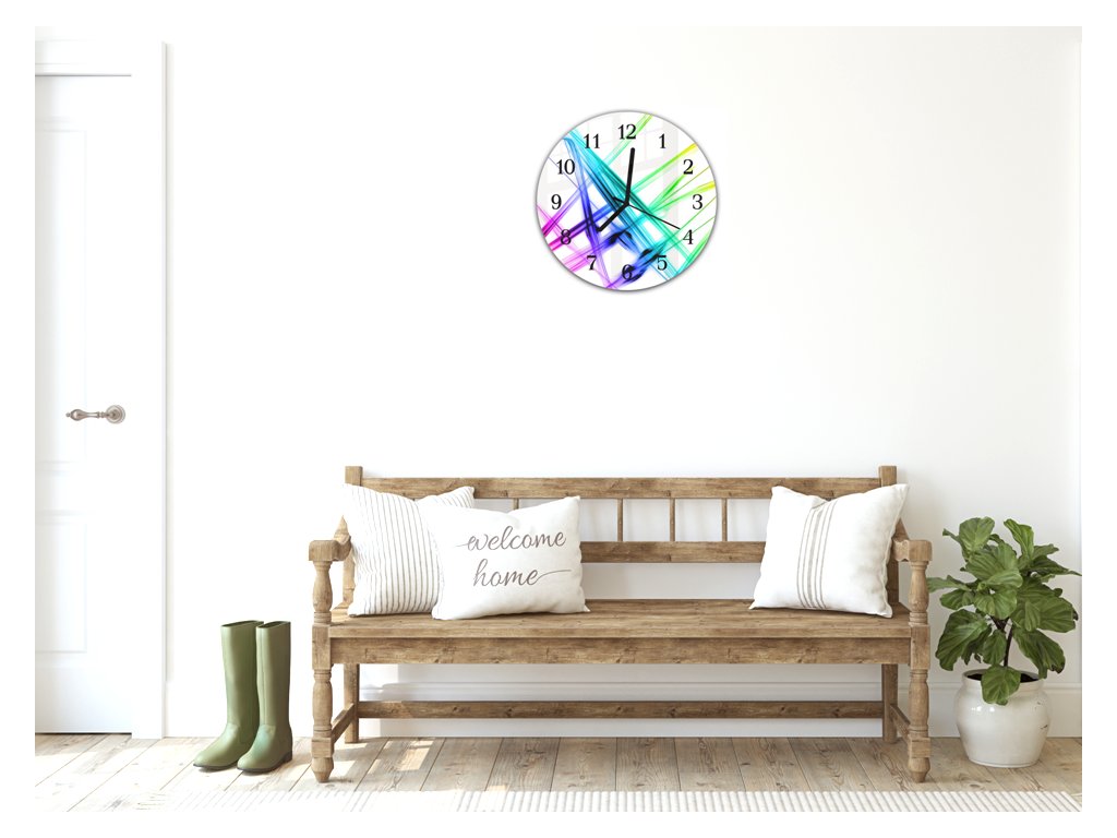Nástěnné hodiny kulaté pr.30cm barevné paprsky na bílém