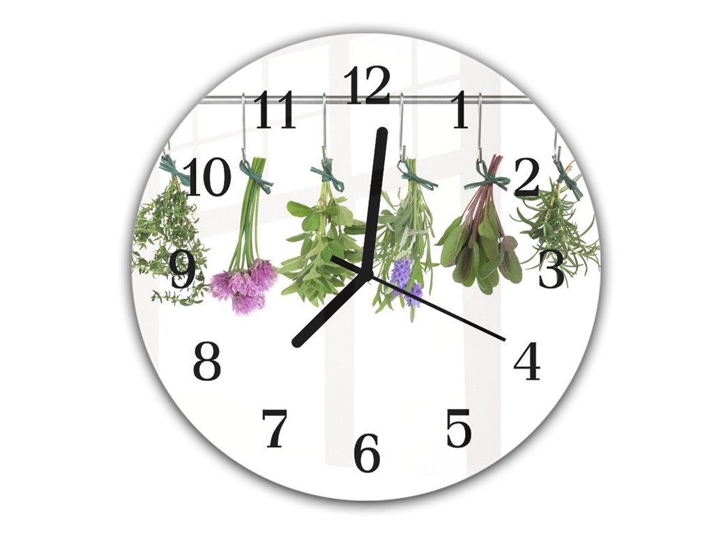 Nástěnné hodiny kulaté pr.30cm čerstvé bylinky na tyči
