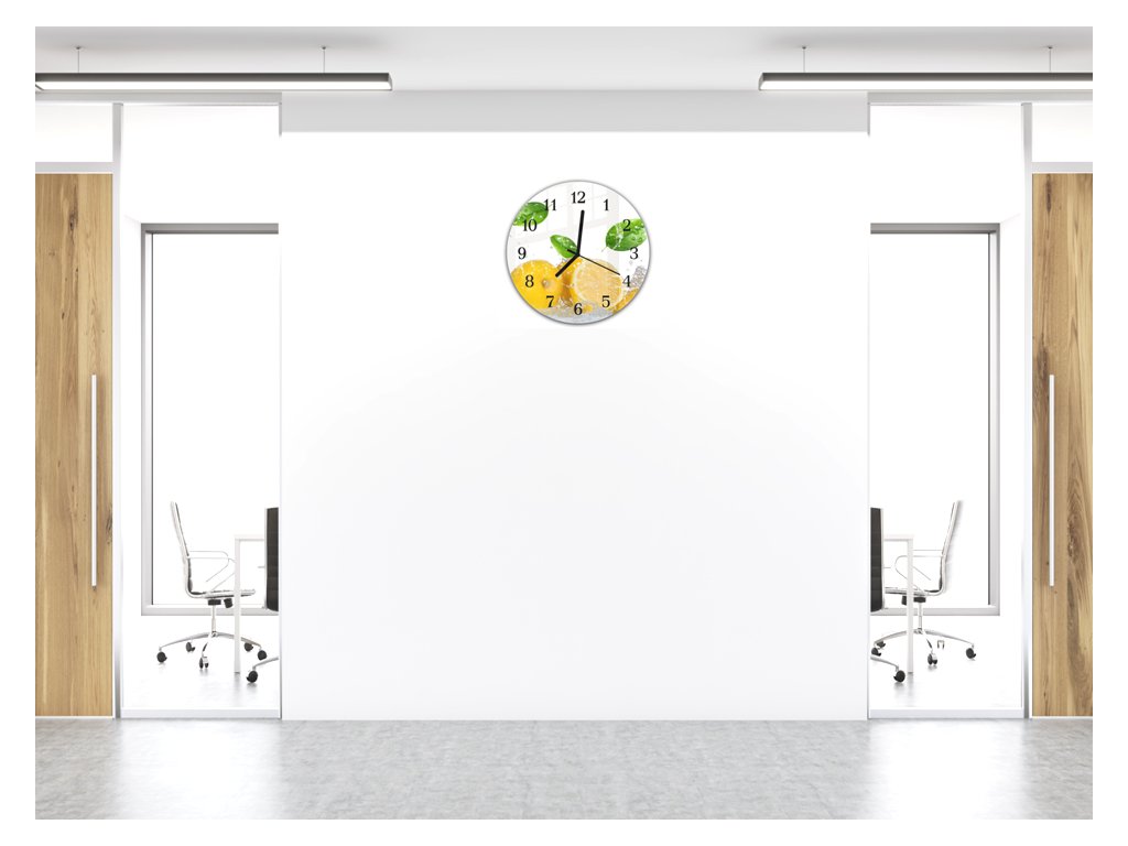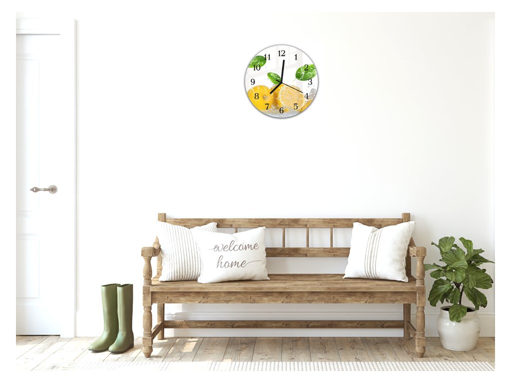 Nástěnné hodiny kulaté pr.30cm čerstvé citrony ve vodě