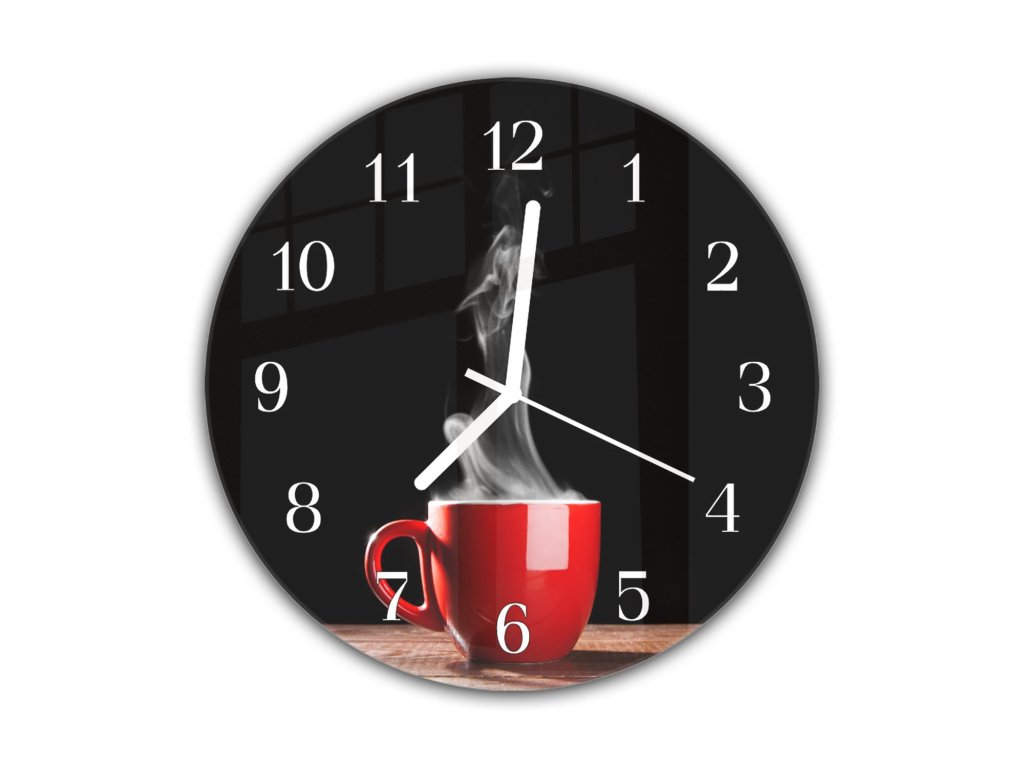 Nástěnné hodiny kulaté pr.30cm červený šálek