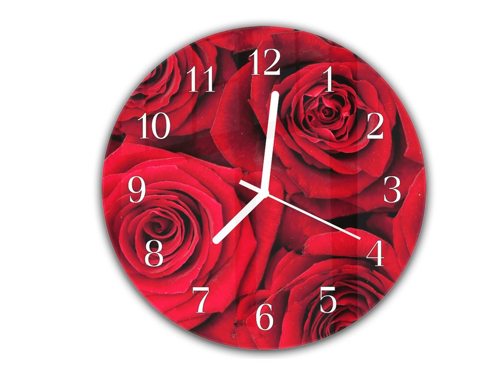 Nástěnné hodiny kulaté pr.30cm detail květ červená růží