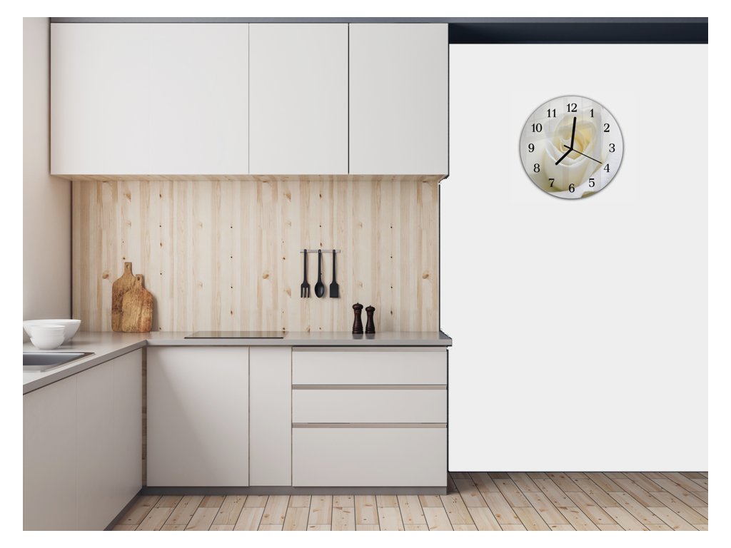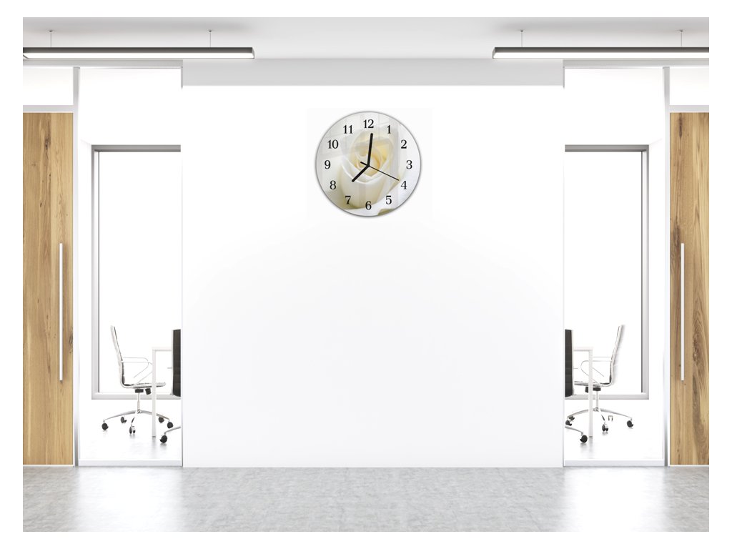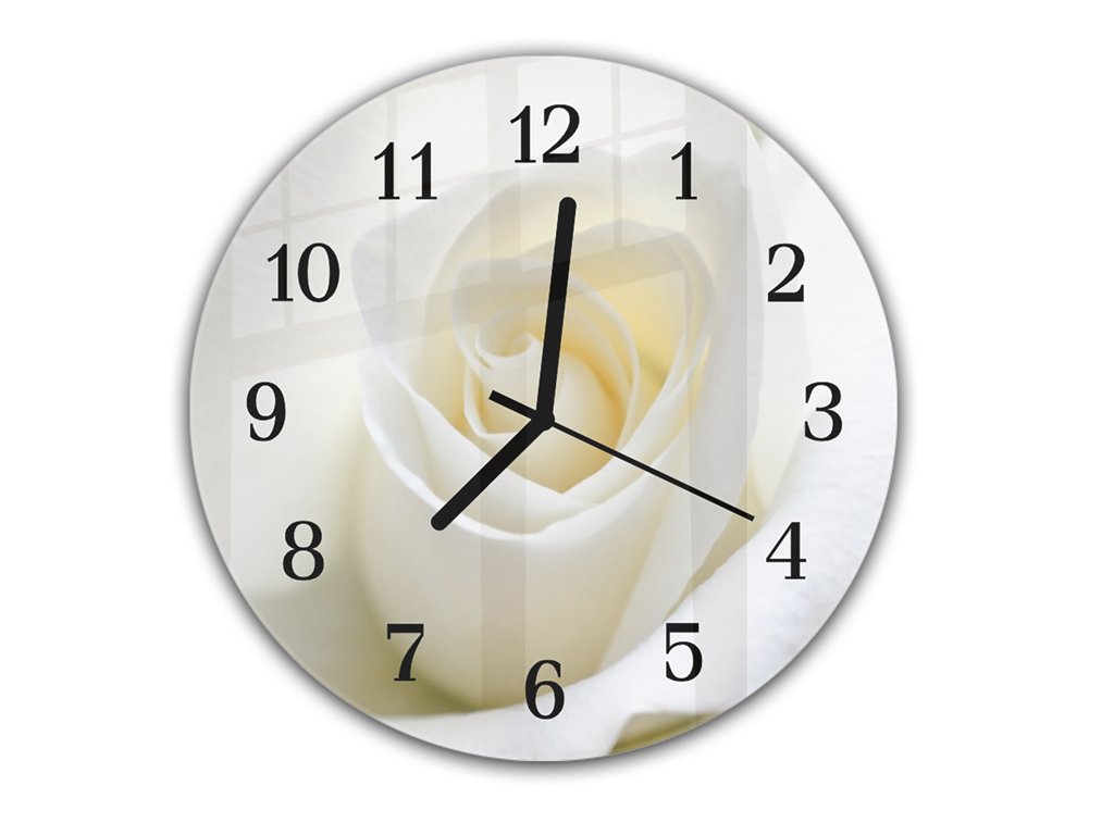 Nástěnné hodiny kulaté pr.30cm detail květu bílé růže
