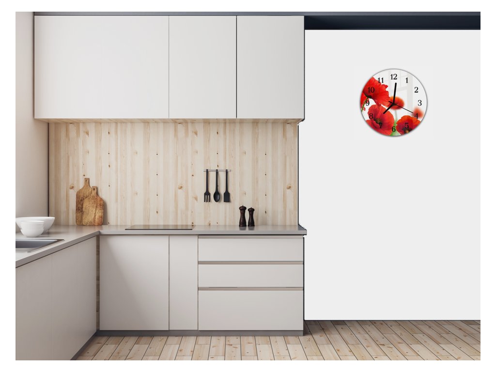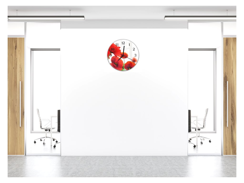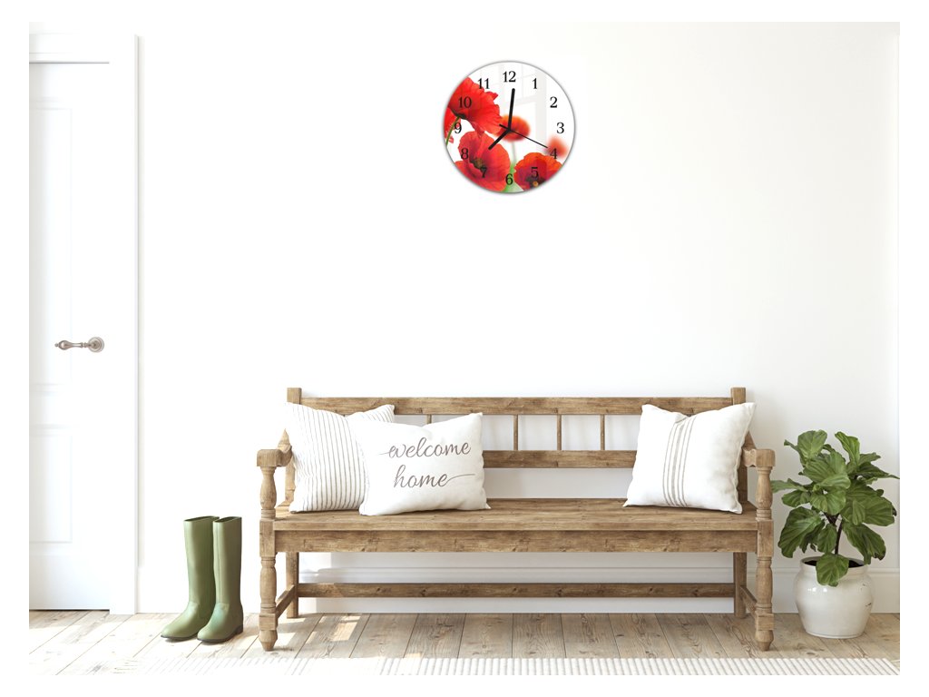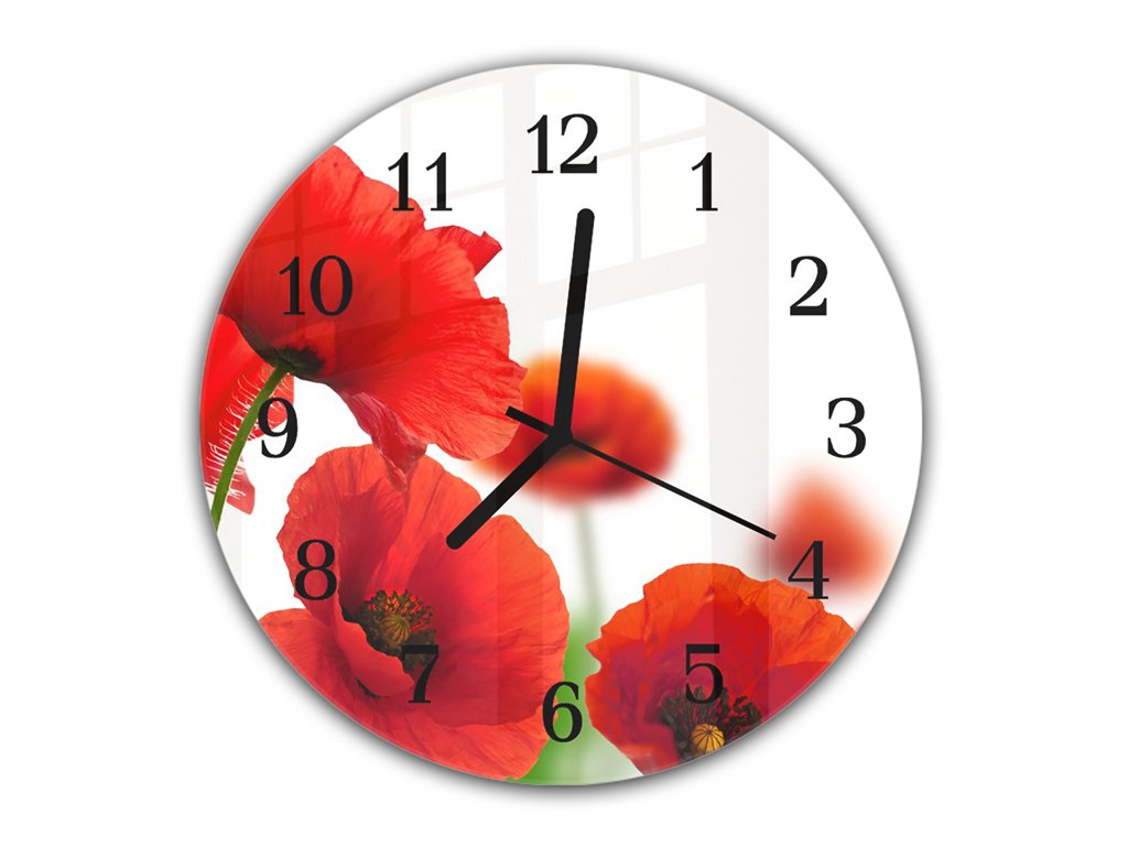 Nástěnné hodiny kulaté pr.30cm detail květy červené vlčí máky