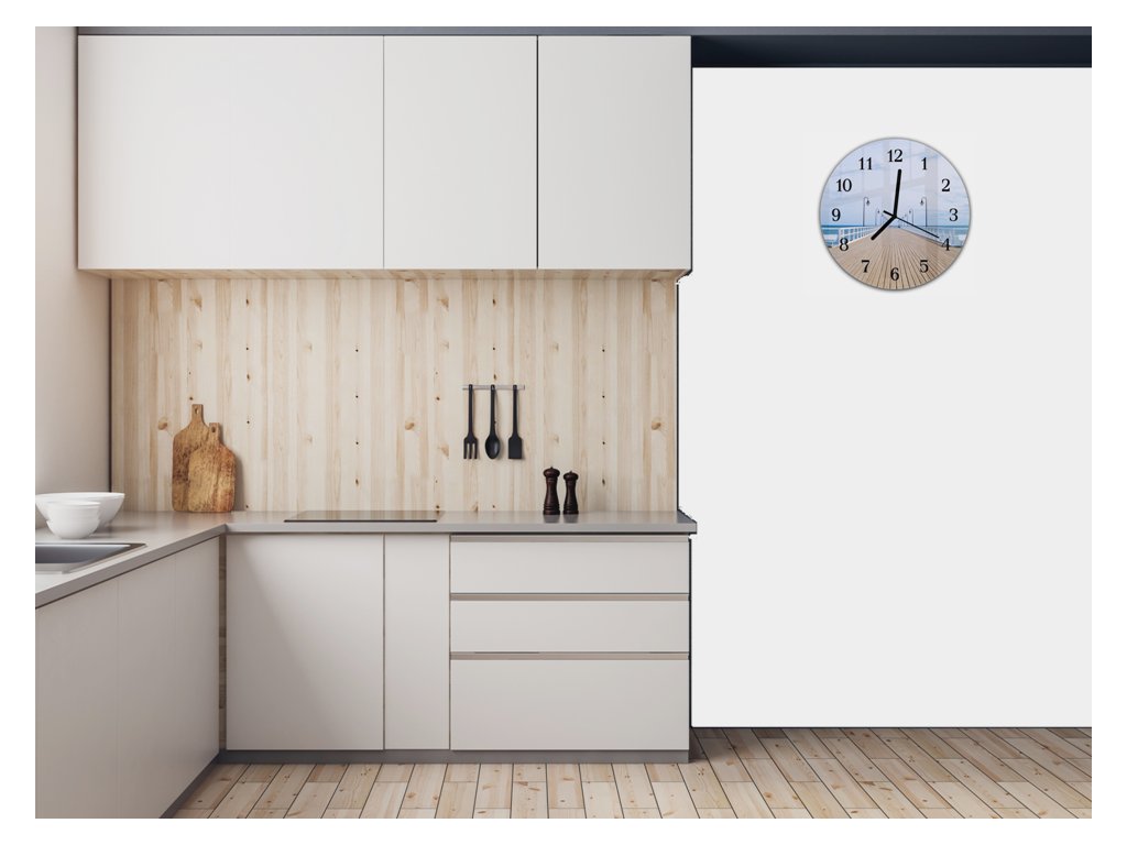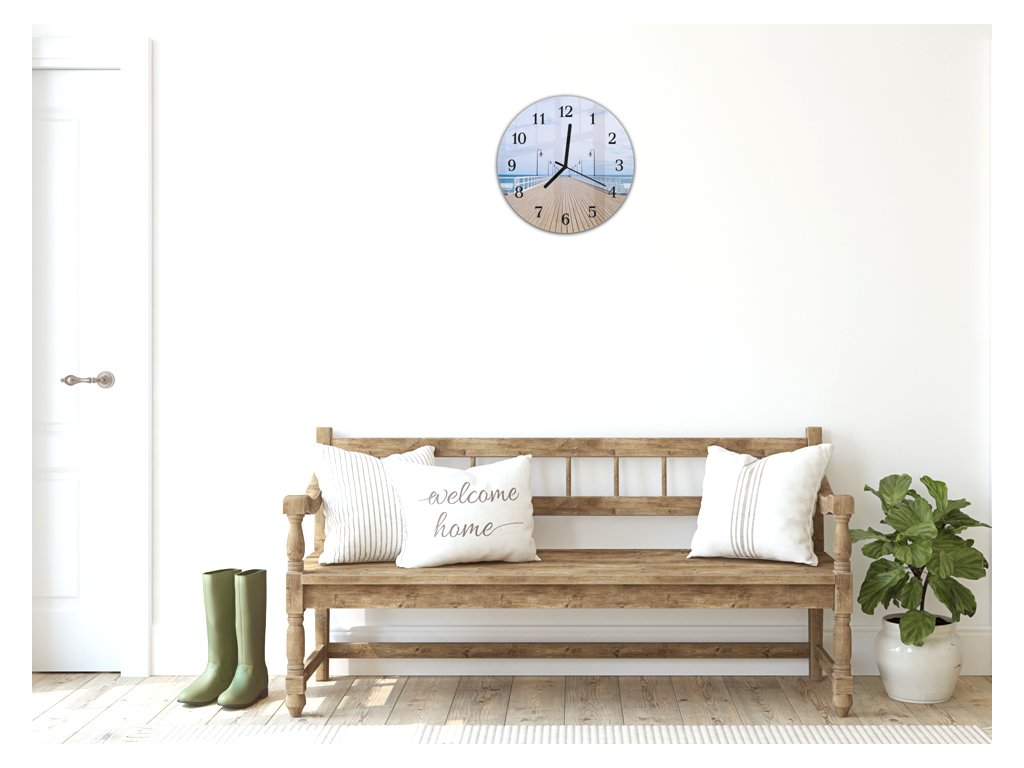 Nástěnné hodiny kulaté pr.30cm dřevěné molo k moři