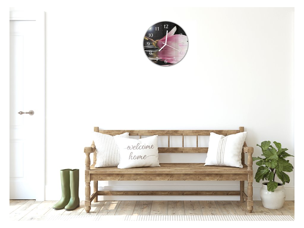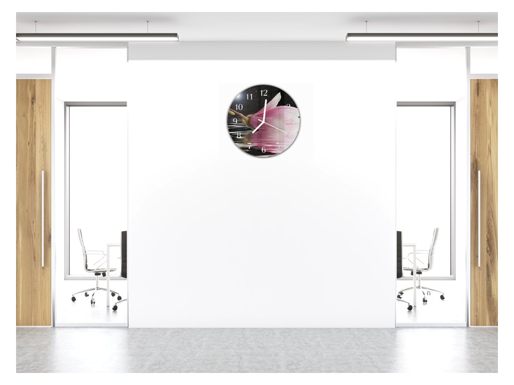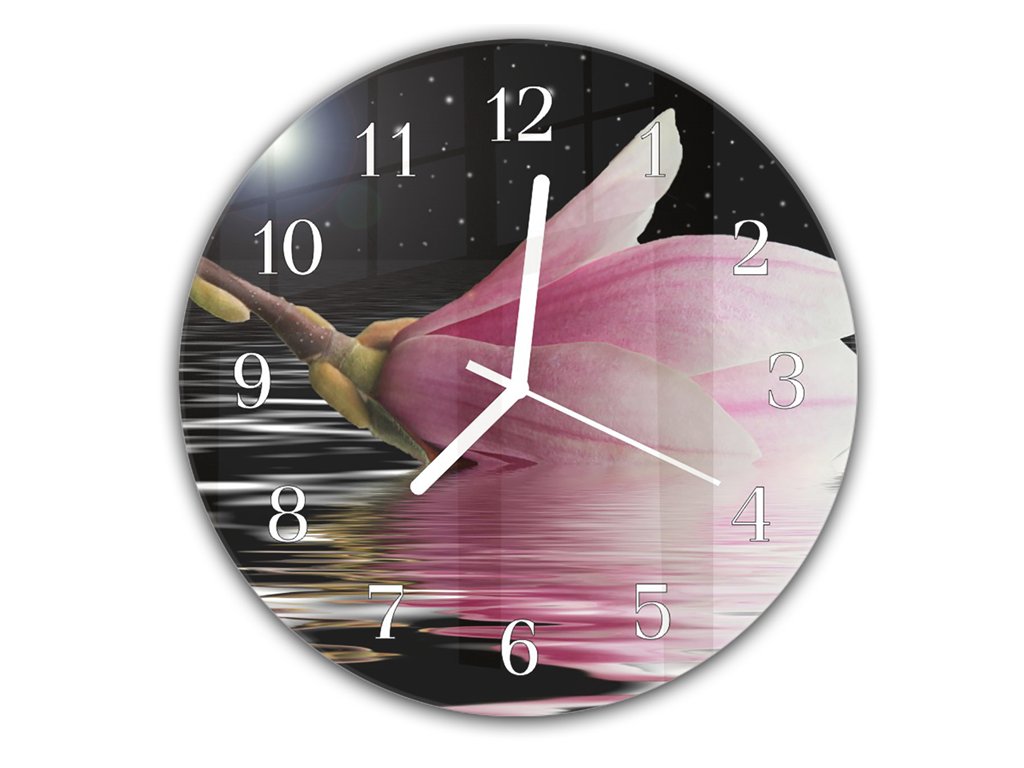 Nástěnné hodiny kulaté pr.30cm květ magnolie na noční hladinou