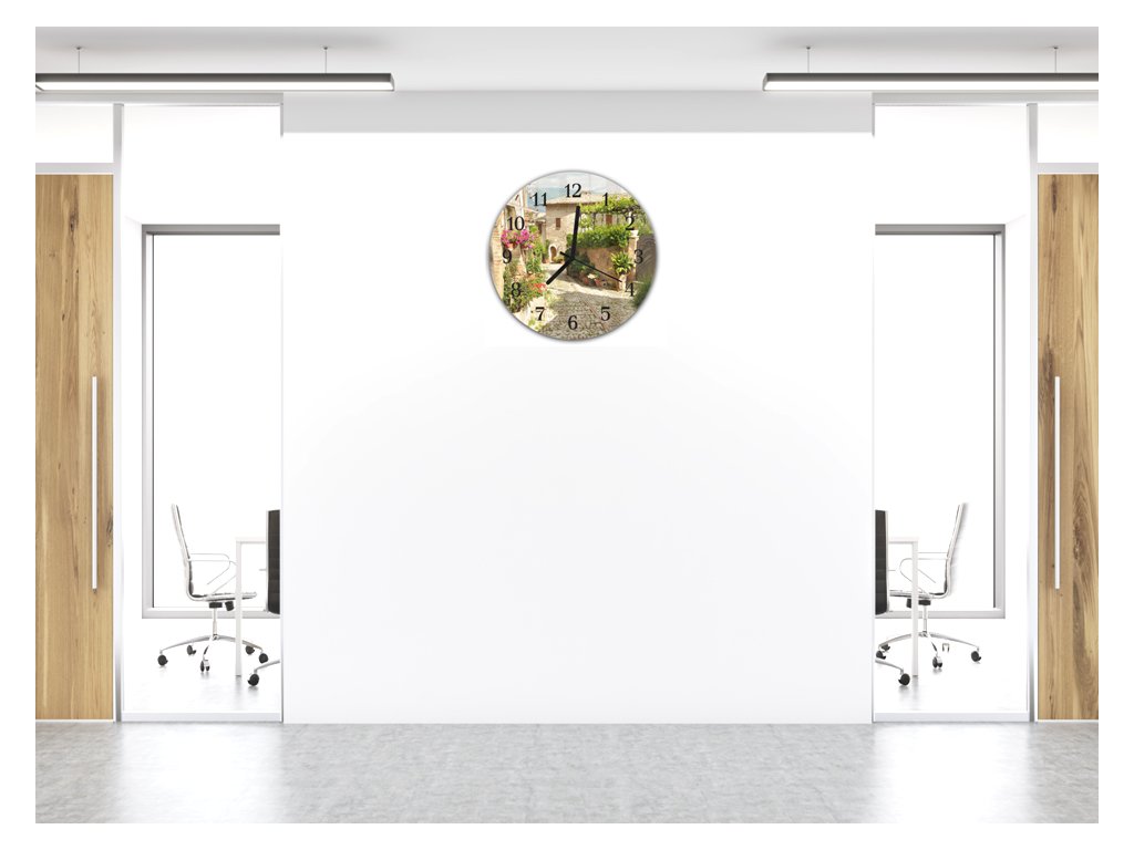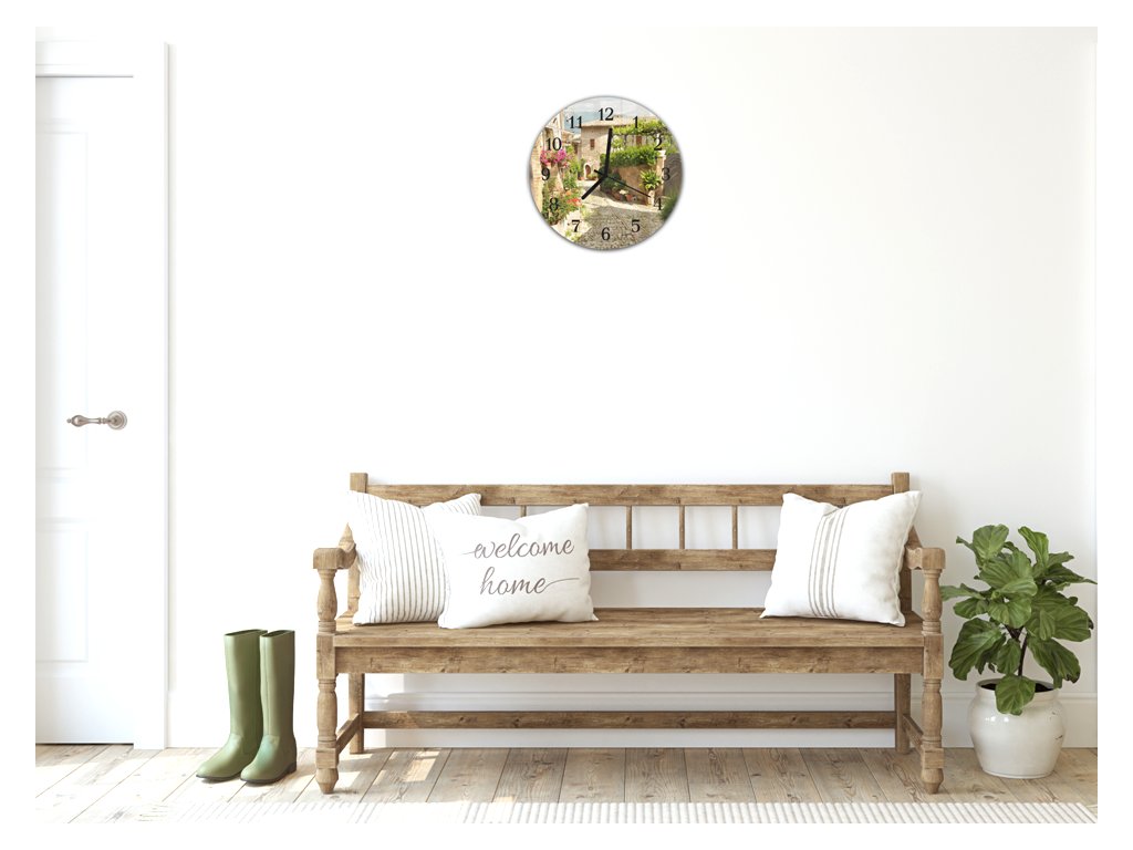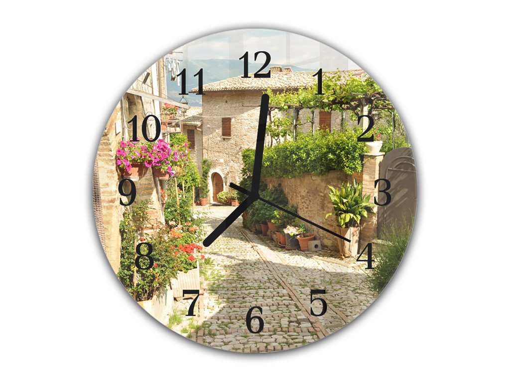 Nástěnné hodiny kulaté pr.30cm květinová ulička v Italském městě