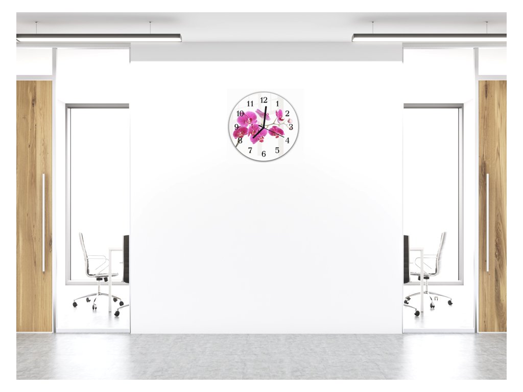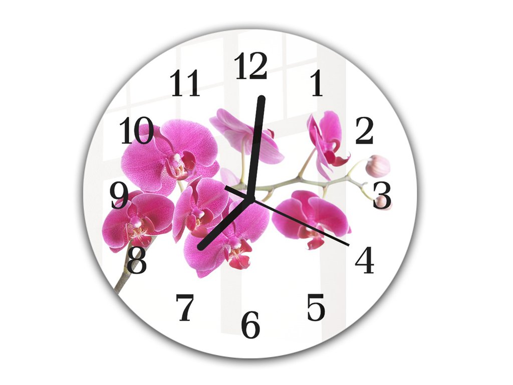 Nástěnné hodiny kulaté pr.30cm květy fialové orchideje