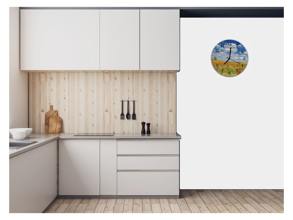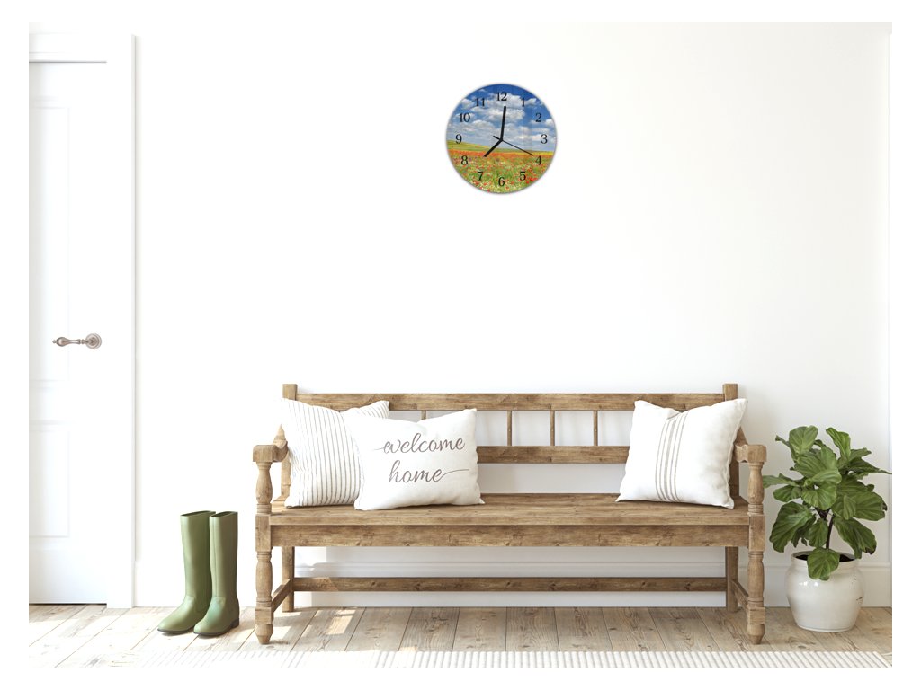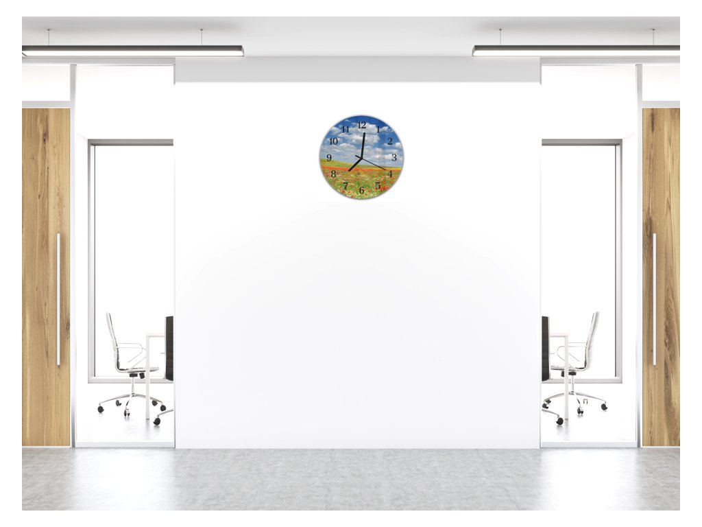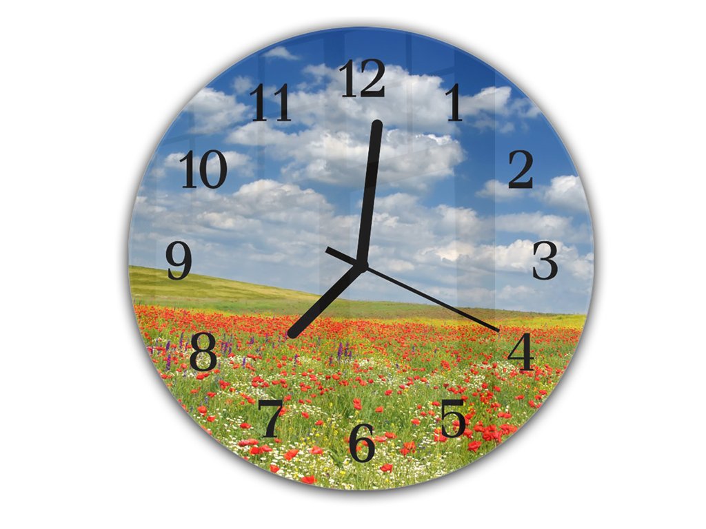 Nástěnné hodiny kulaté pr.30cm letní louka červené vlčí máky