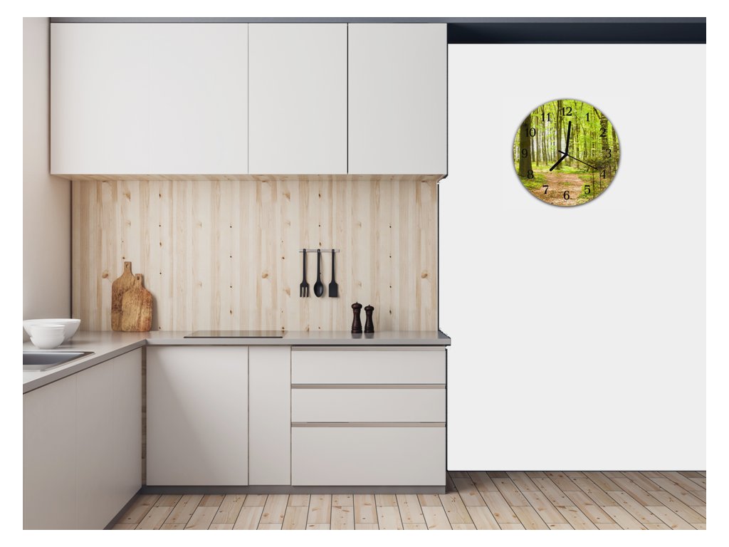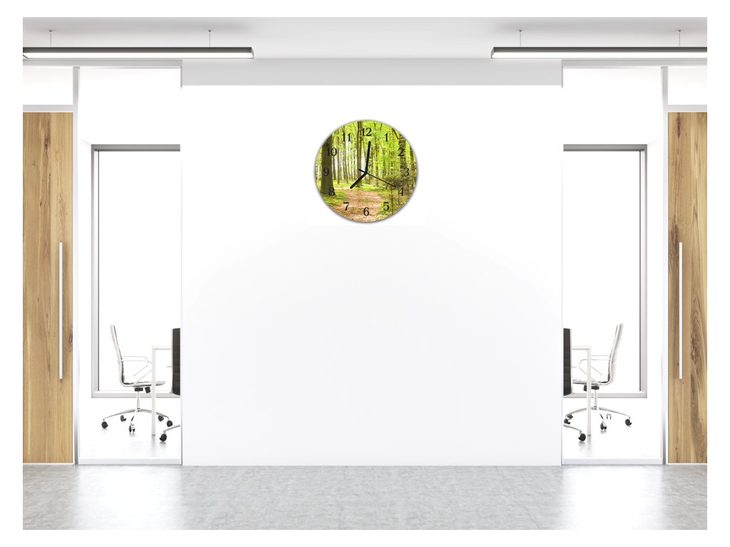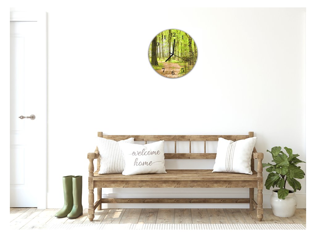 Nástěnné hodiny kulaté pr.30cm listnatý les a pěšina