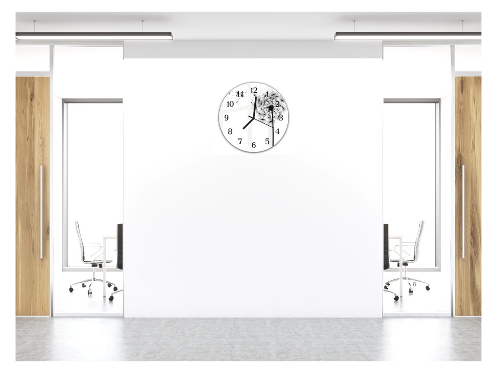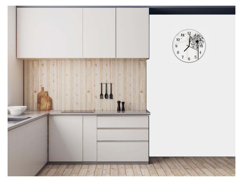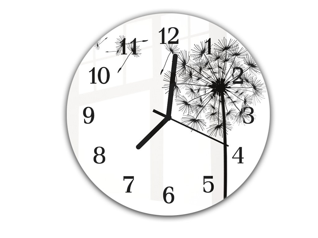 Nástěnné hodiny kulaté pr.30cm malovaná černobílá odkvetlá pampeliška