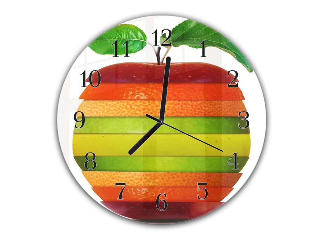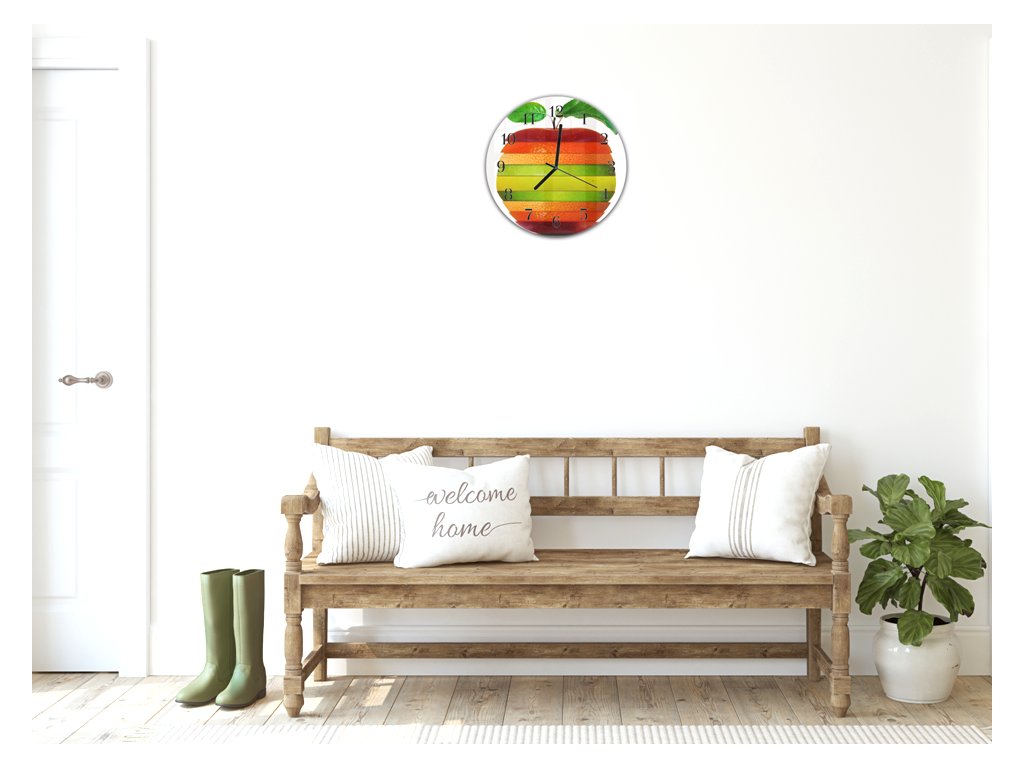 Nástěnné hodiny kulaté pr.30cm mix ovoce ve tvaru jabka