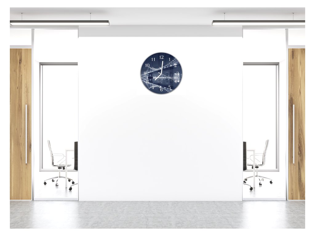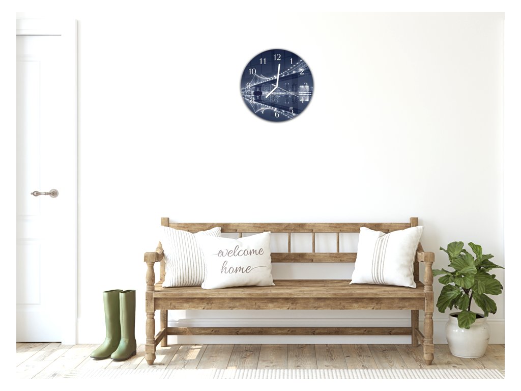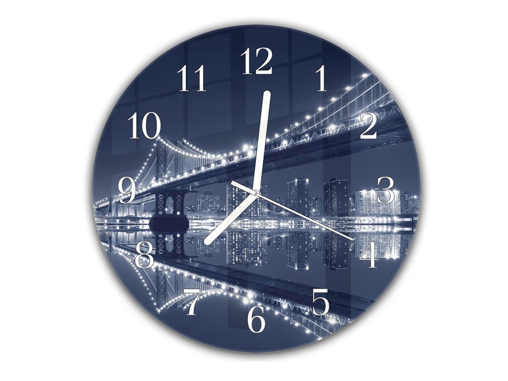 Nástěnné hodiny kulaté pr.30cm noční osvětlený Manhattan most