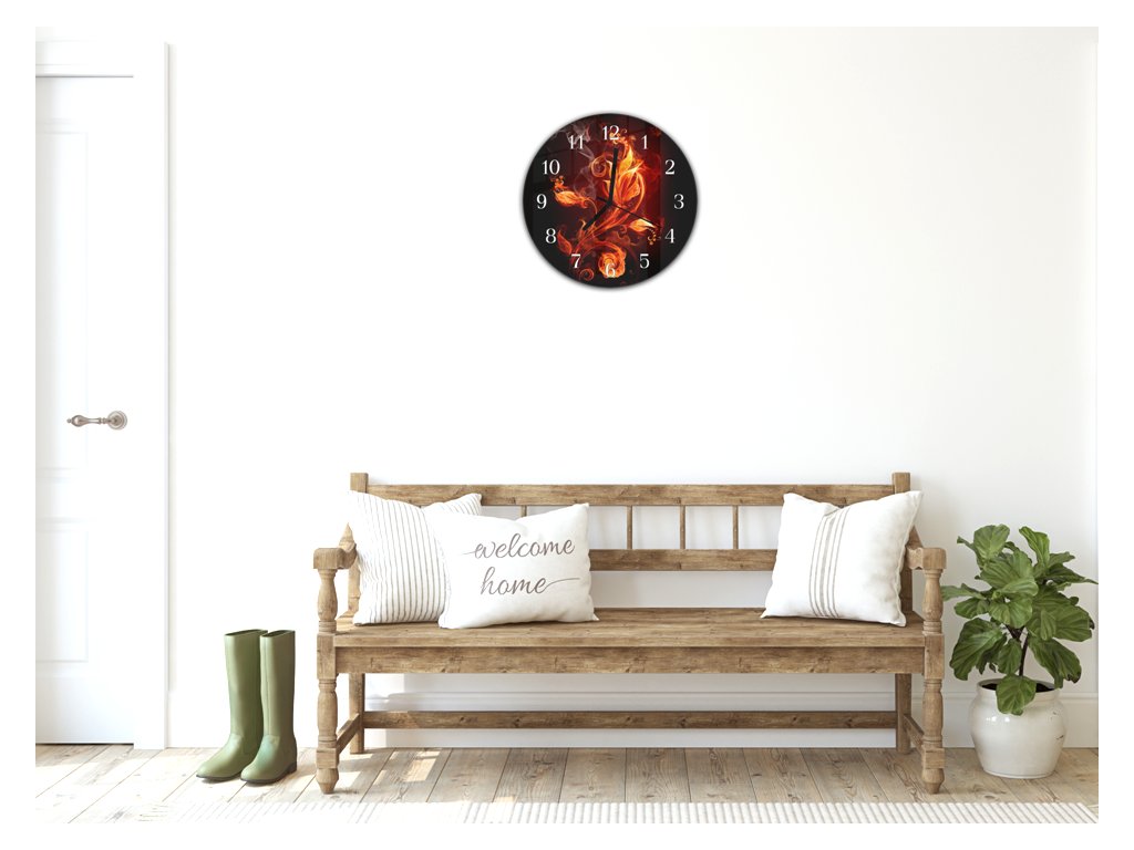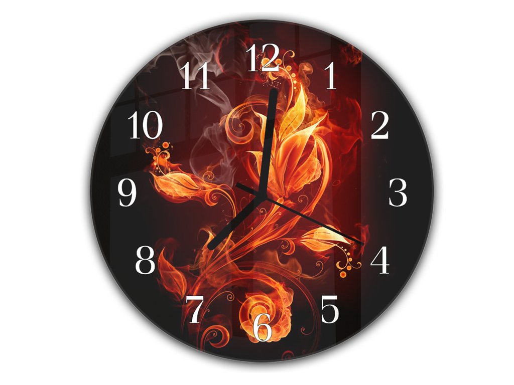 Nástěnné hodiny kulaté pr.30cm ohnivý květ na hnědém pozadí