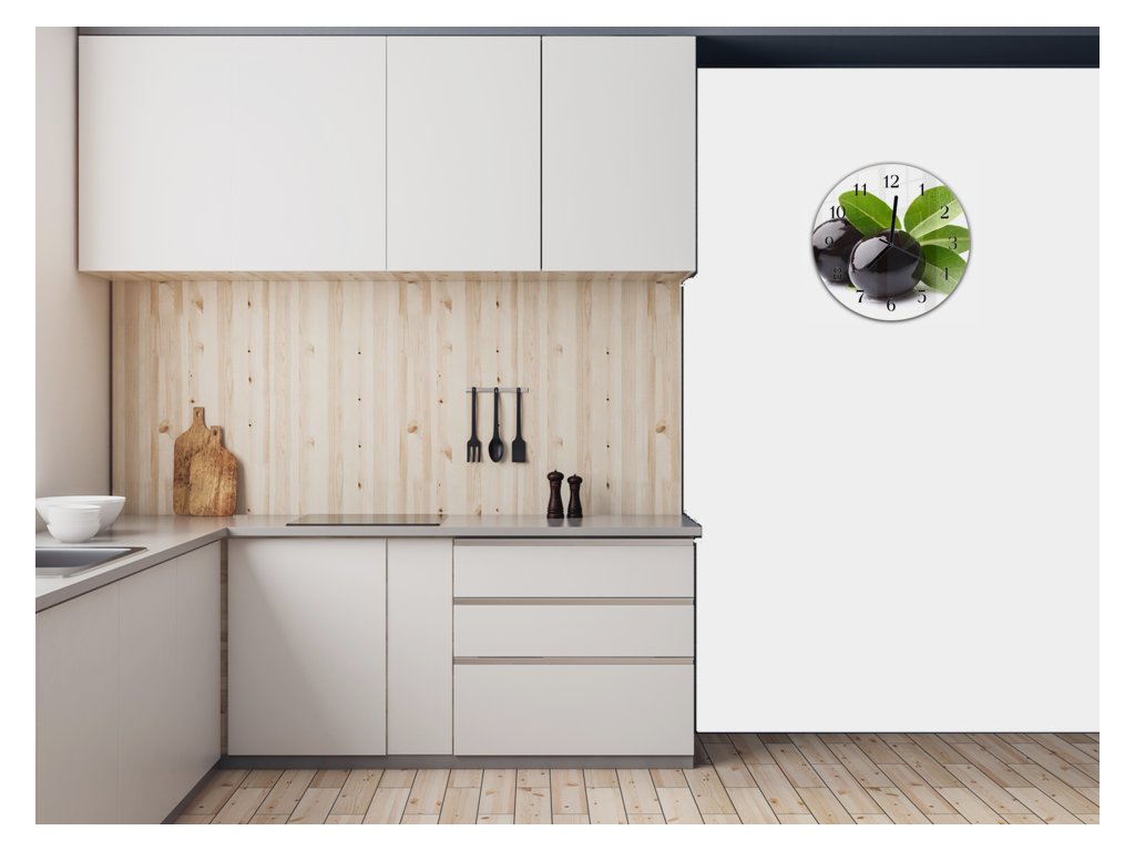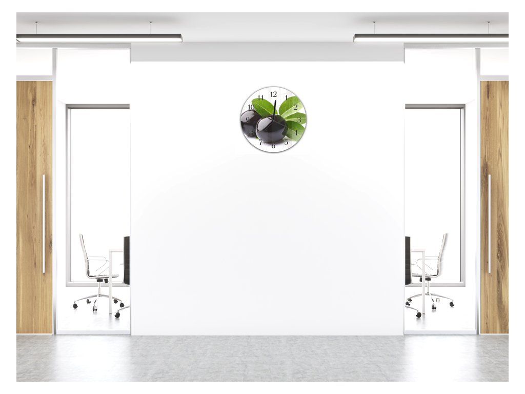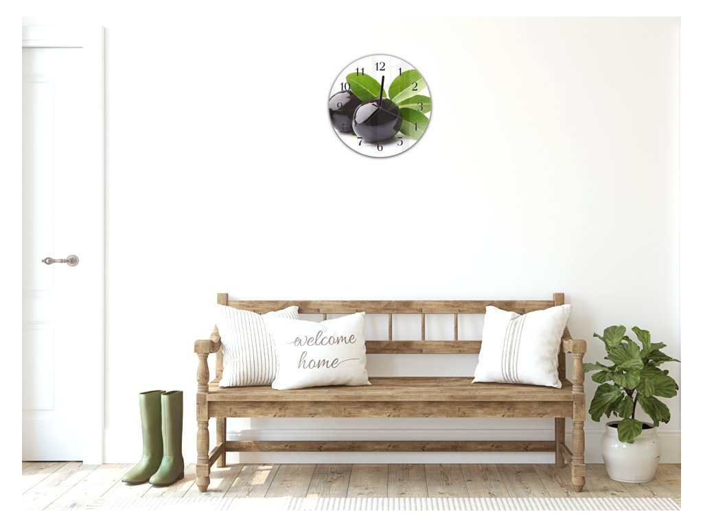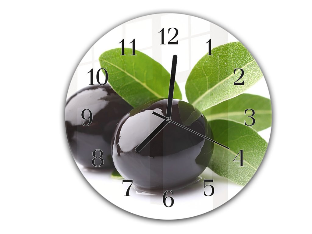 Nástěnné hodiny kulaté pr.30cm ovoce černé olivy s listím