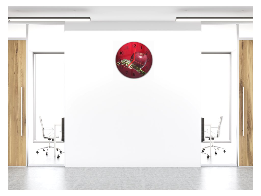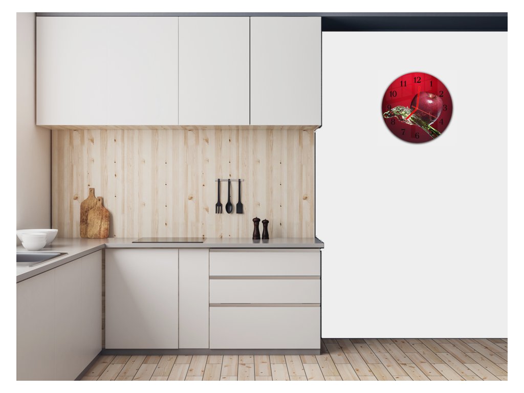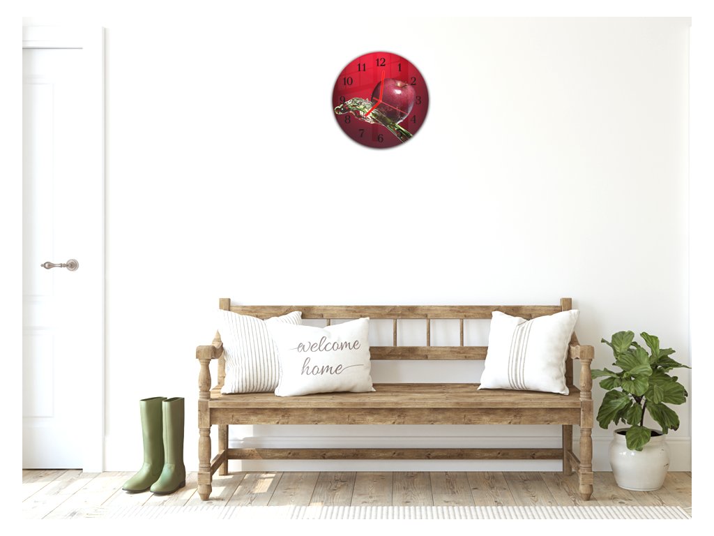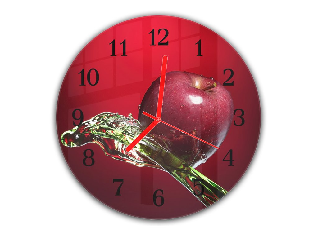 Nástěnné hodiny kulaté pr.30cm ovoce červené jablko ve vodě