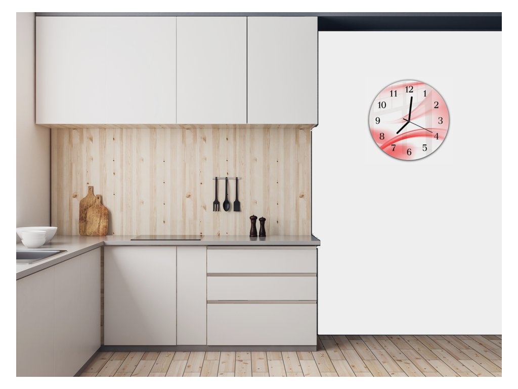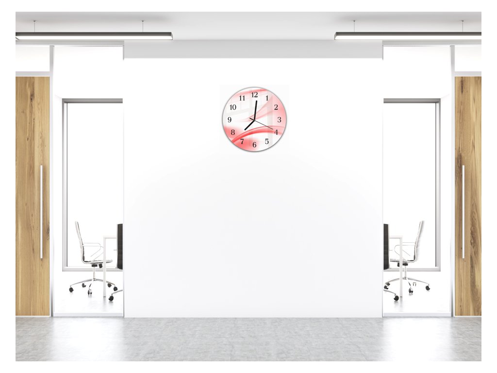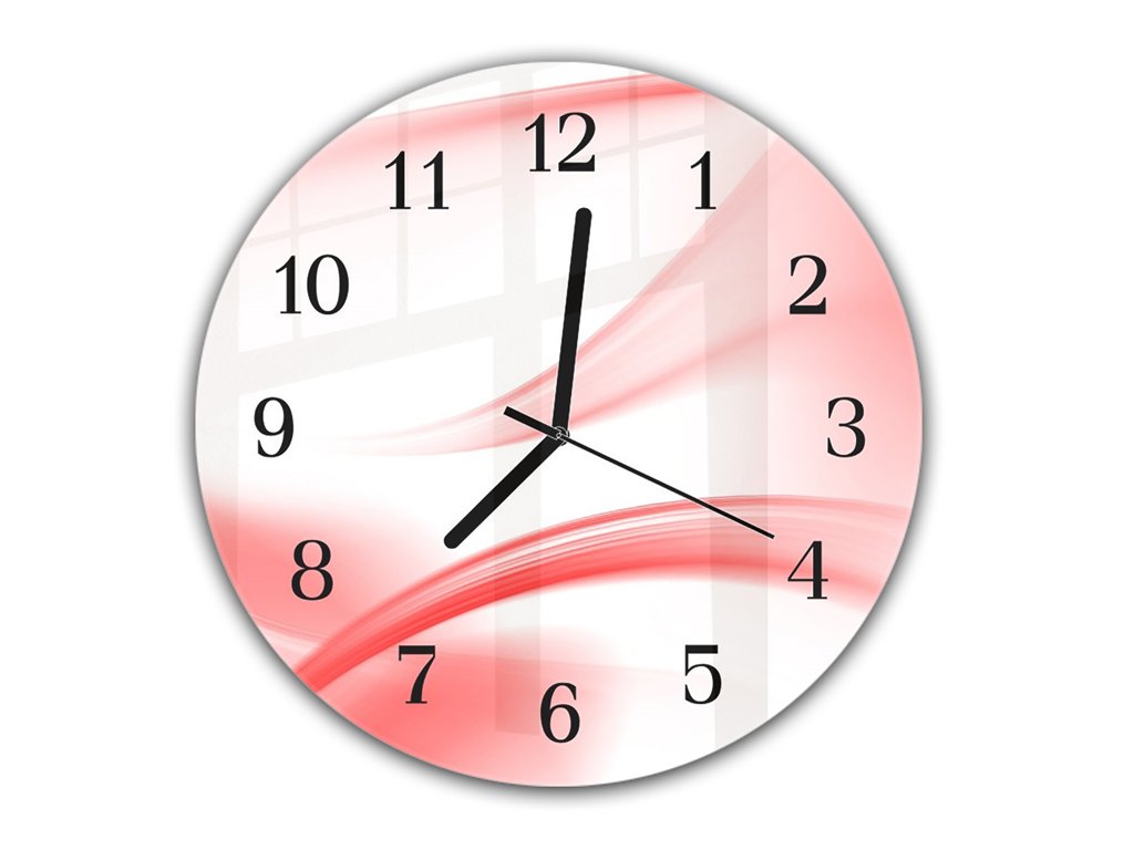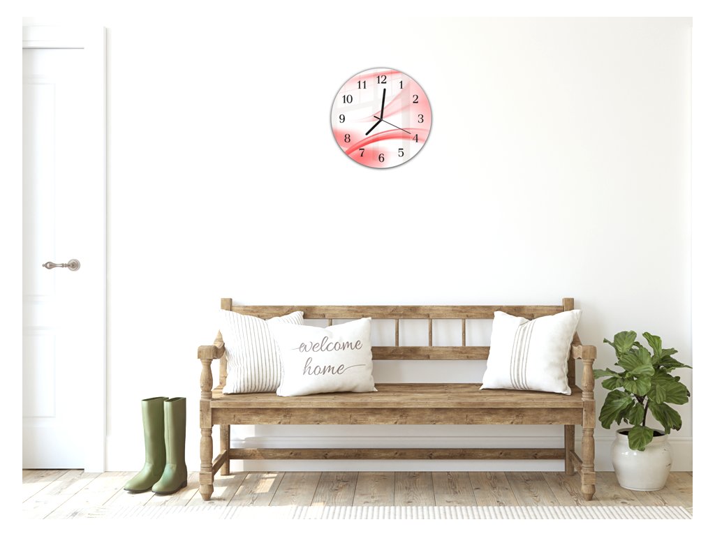 Nástěnné hodiny kulaté pr.30cm světle červená vlna na bílém pozadí