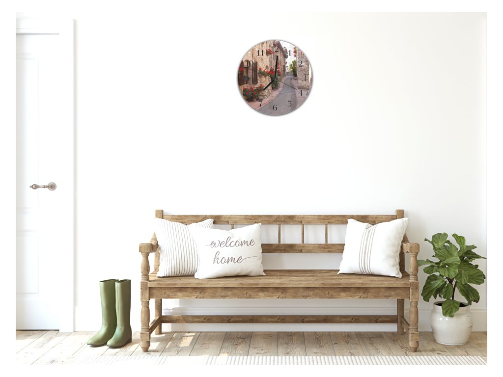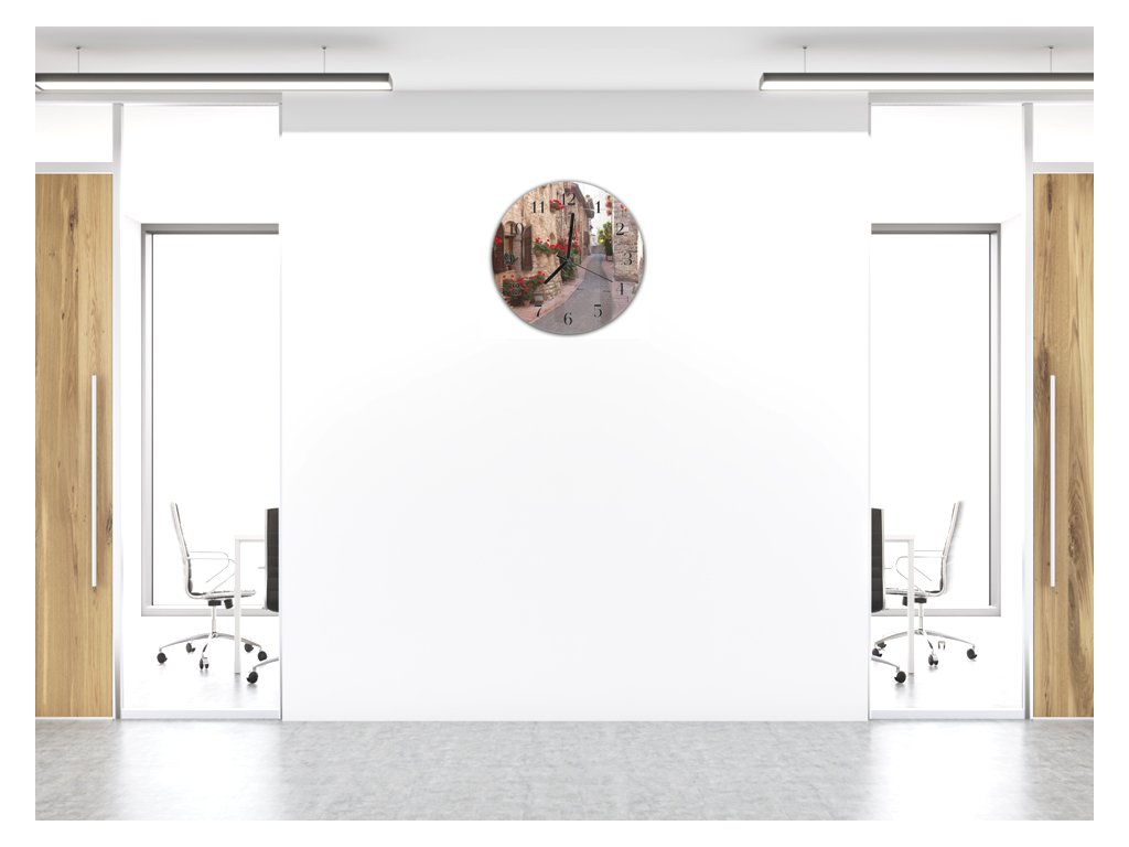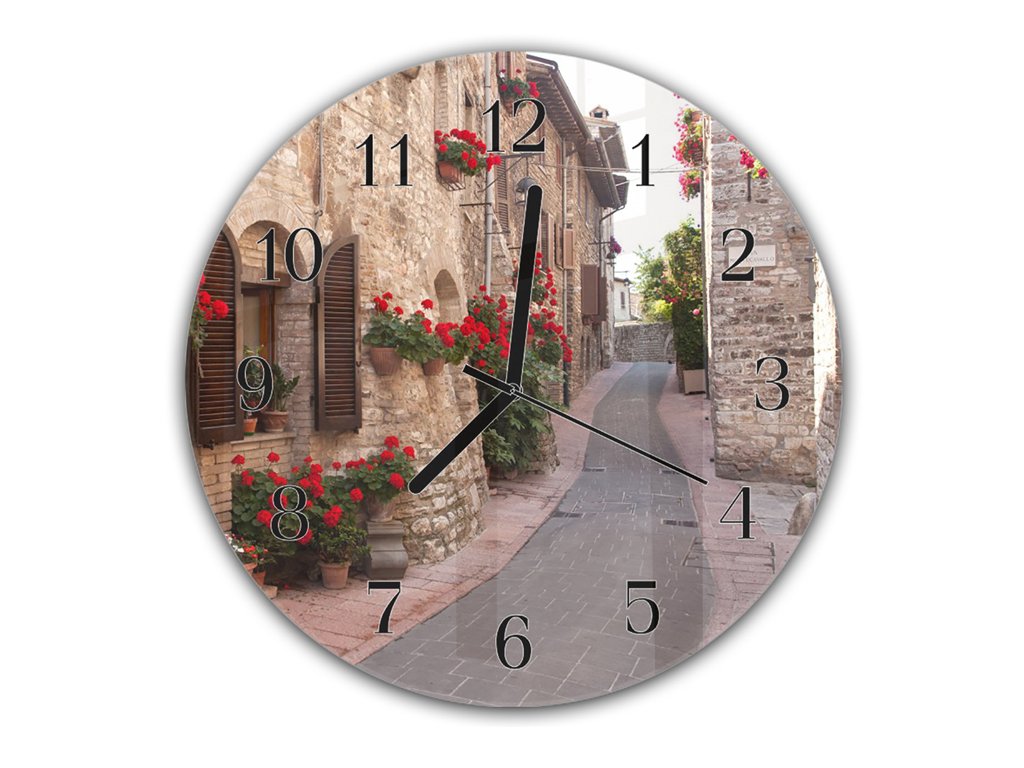 Nástěnné hodiny kulaté pr.30cm ulička ve městě Assisi Itálie
