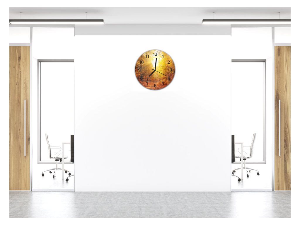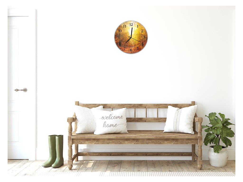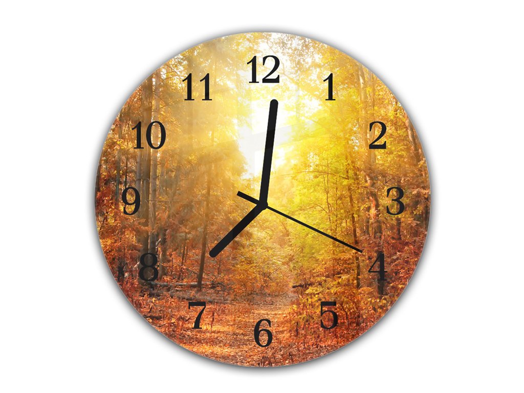 Nástěnné hodiny kulaté pr.30cm východ slunce a podzimní les