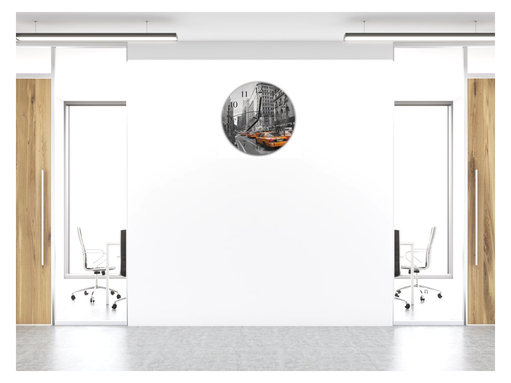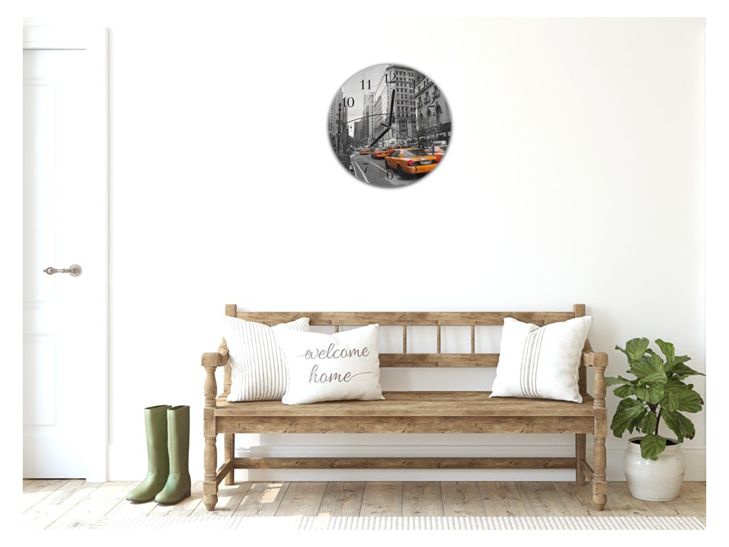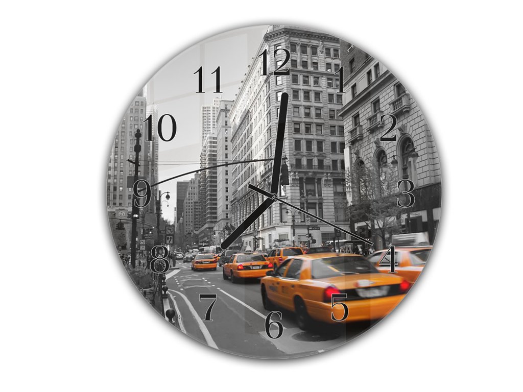 Nástěnné hodiny kulaté pr.30cm žluté taxi ve městě Manhattan