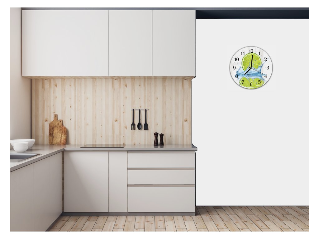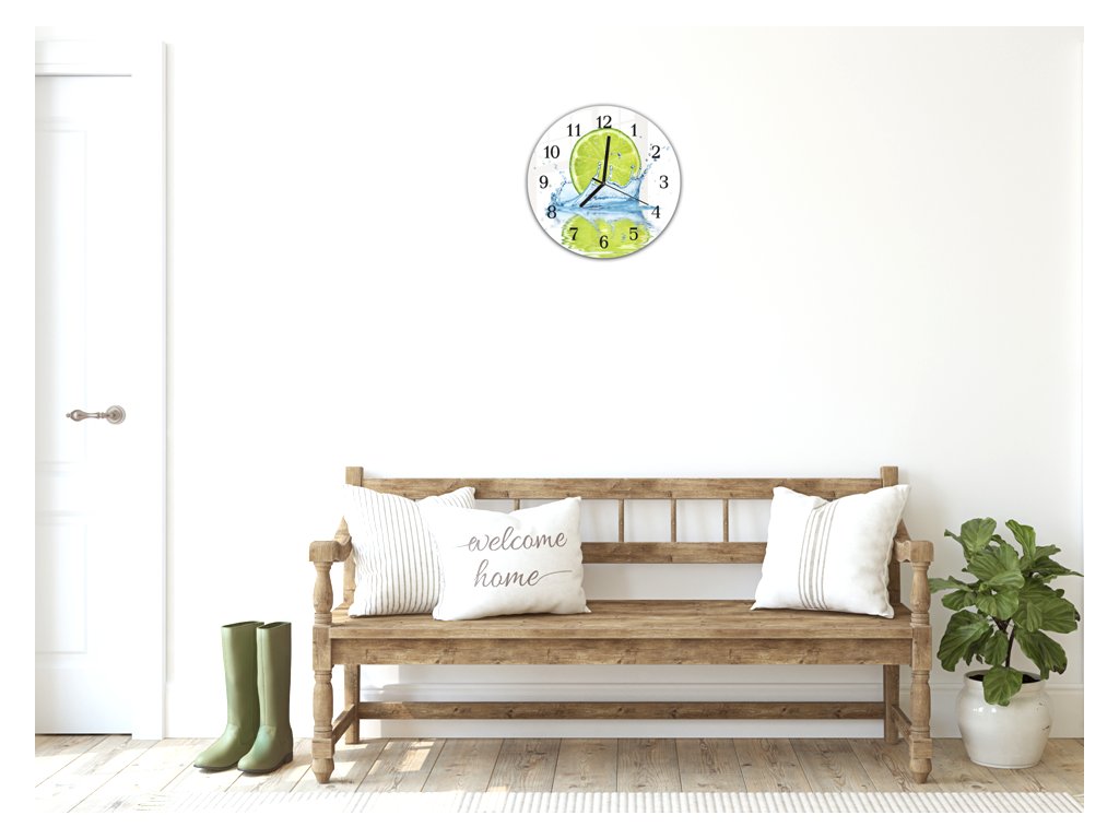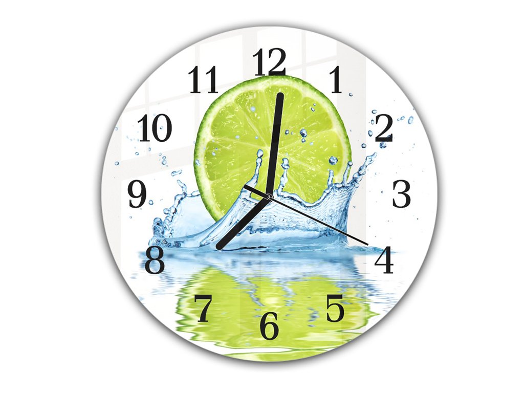 Nástěnné hodiny kulaté r.30cm odraz půl limetky v hladině vody