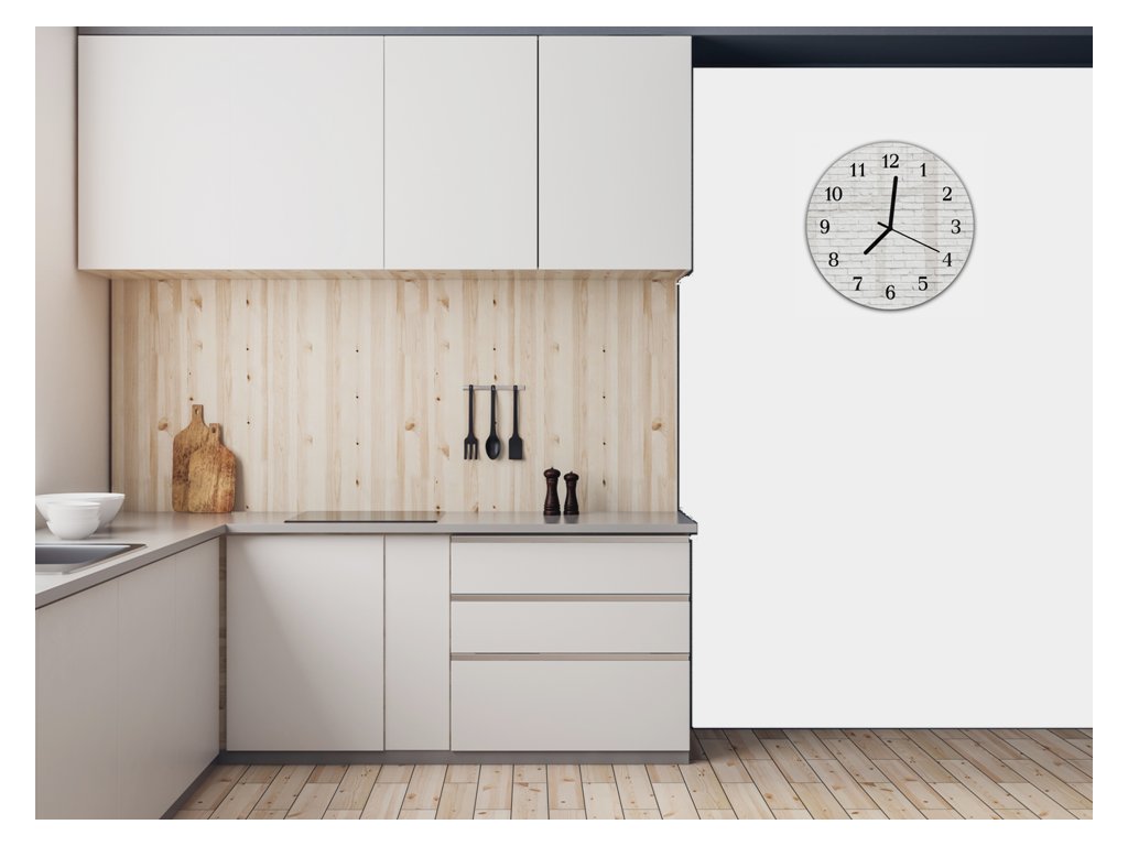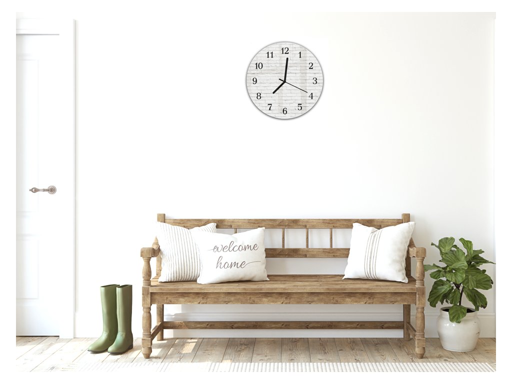 Nástěnné hodiny kulatépr.30cm zeď z bílé cihly