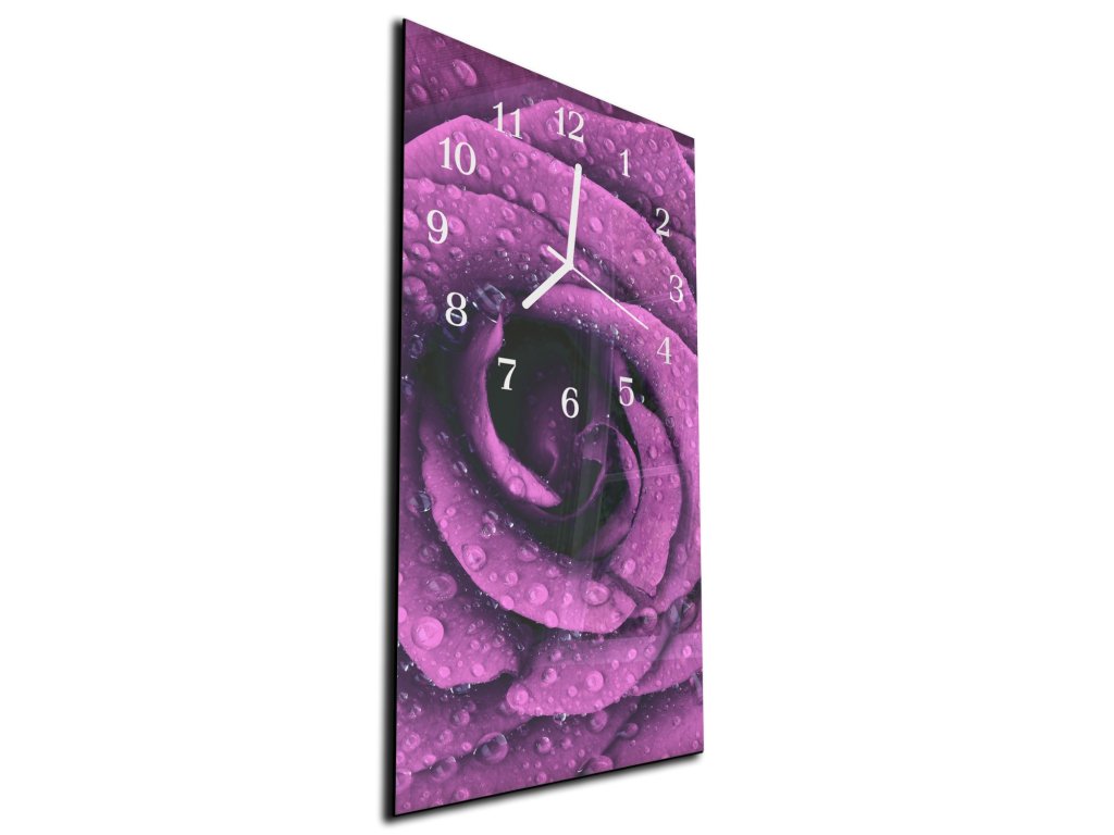 Nástěnné hodiny květ růže fialový 30x60cm