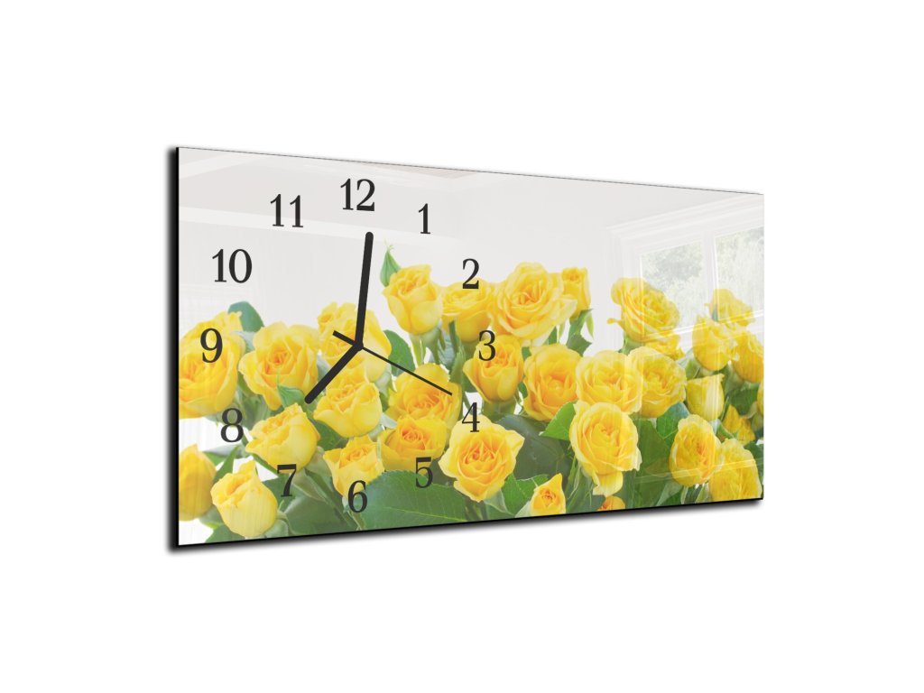 Nástěnné hodiny kytice žluté růže 30x60cm