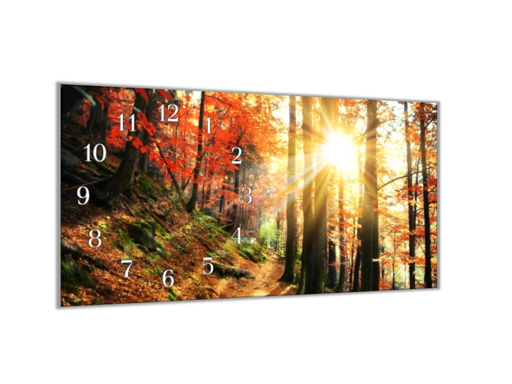 Nástěnné hodiny les podzimní příroda 30x60cm
