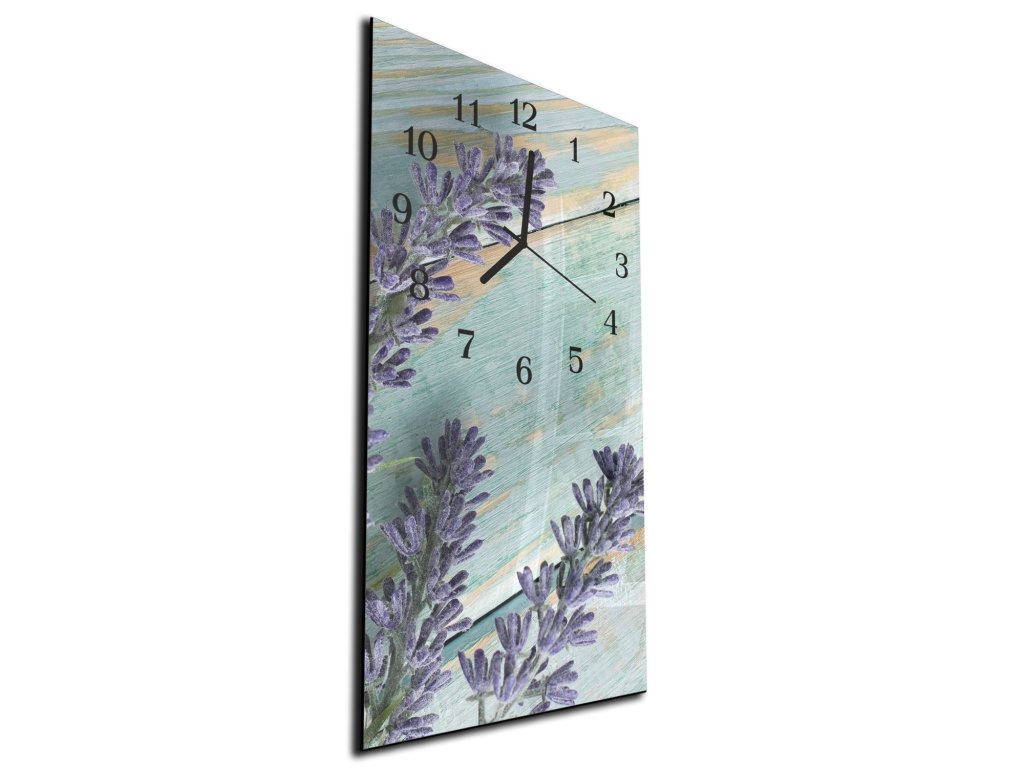Nástěnné hodiny levandule na modrém dřevě 30x60cm
