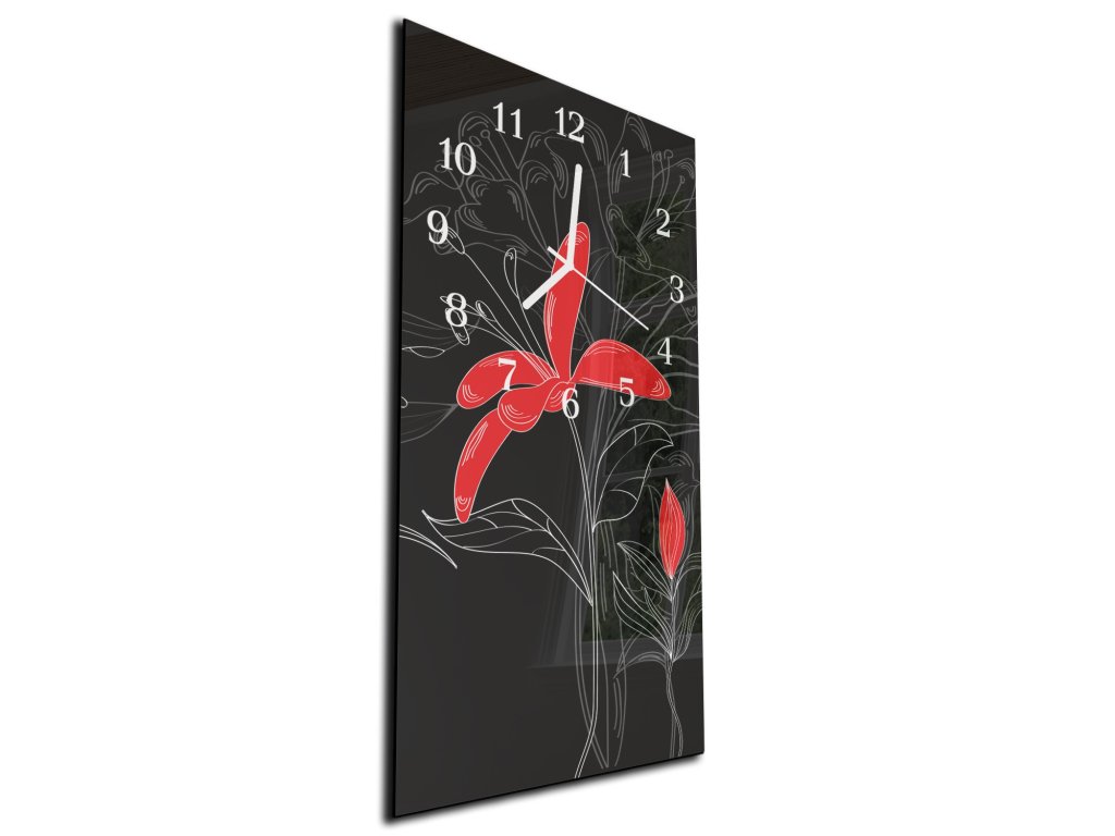 Nástěnné hodiny malovaný červený květ 30x60cm