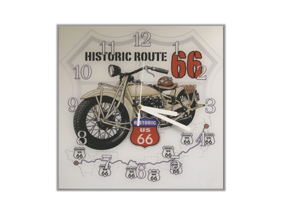 Nástěnné hodiny moto 30x30cm historická cesta 66