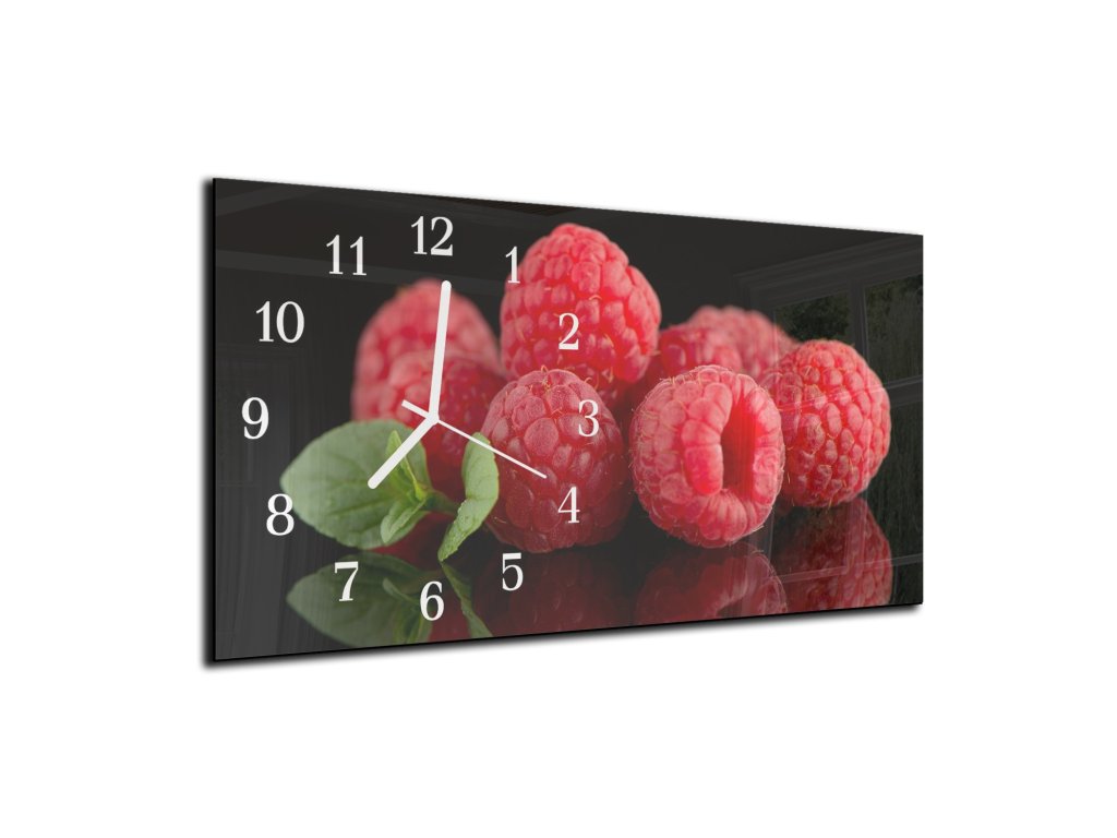Nástěnné hodiny ovoce maliny černé pozadí 30x60cm