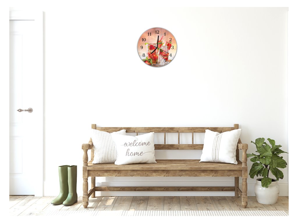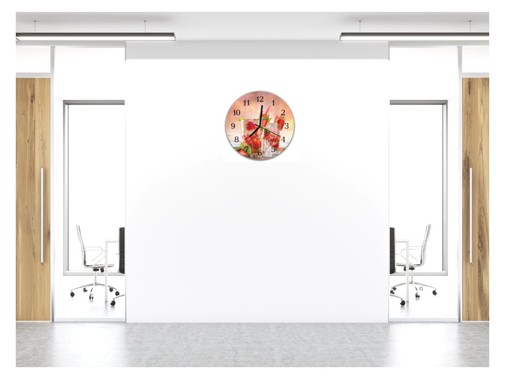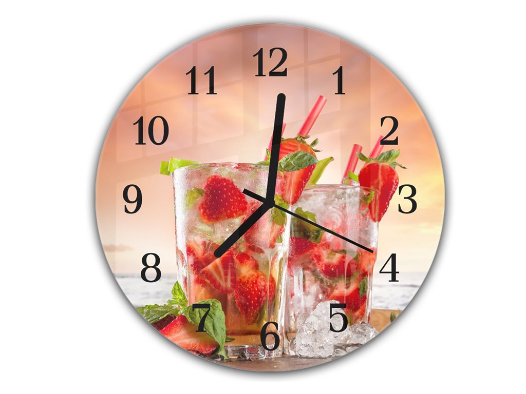 Nástěnné hodiny pr.30cm ovoce jahody ve sklenici a ledem a mátou