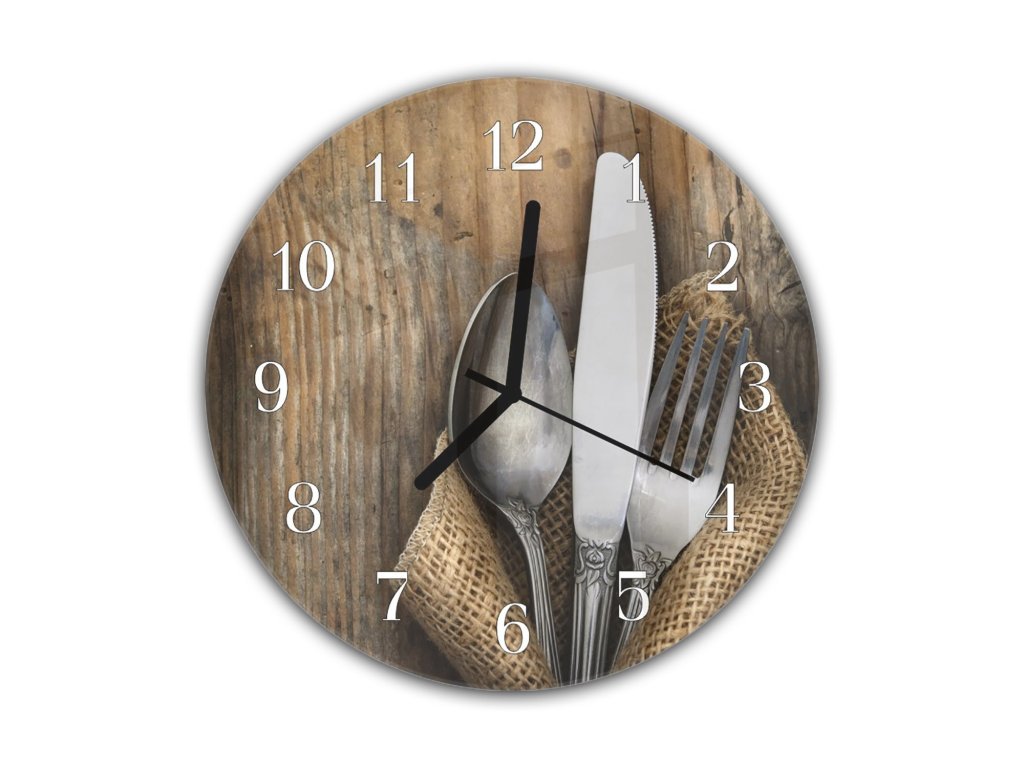 Nástěnné hodiny pr.30cm příbor na dřevě
